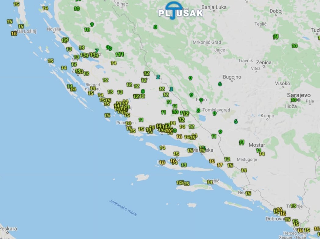 Petak (BOŽIĆ) donosi umjereno do znatno oblačno vrijeme, povremeno uz kišu, a na sjeveru Dalmaciji povremeno će biti pljuskova i grmljavine. Ponegdje će pasti preko 30 litara kiše po kvadratnom metru. Krajem dana kiša će prijeći u snijeg iznad 1000 metara nadmorske visine. Veći dio dana puhat će umjereno do pojačano jugo. Popodne će se bura sa sjevernog Jadrana širiti na srednji, no jake bure bit će samo podno Velebita. Veći dio dana toplo, najviše dnevne temperature zraka većinom od 10 do 16°C. Krajem dana i osobito navečer početak zahlađenja.