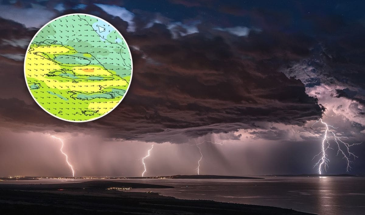 Dok se u Dalmaciji nastavlja stabilno vrijeme, dijelovi unutrašnjosti zemlje i sjevernog Jadrana posljednja 24 sata imali su jače grmljavinske nestabilnosti s kojima je lokalno palo i preko 20 litara oborine po kvadratnom metru.