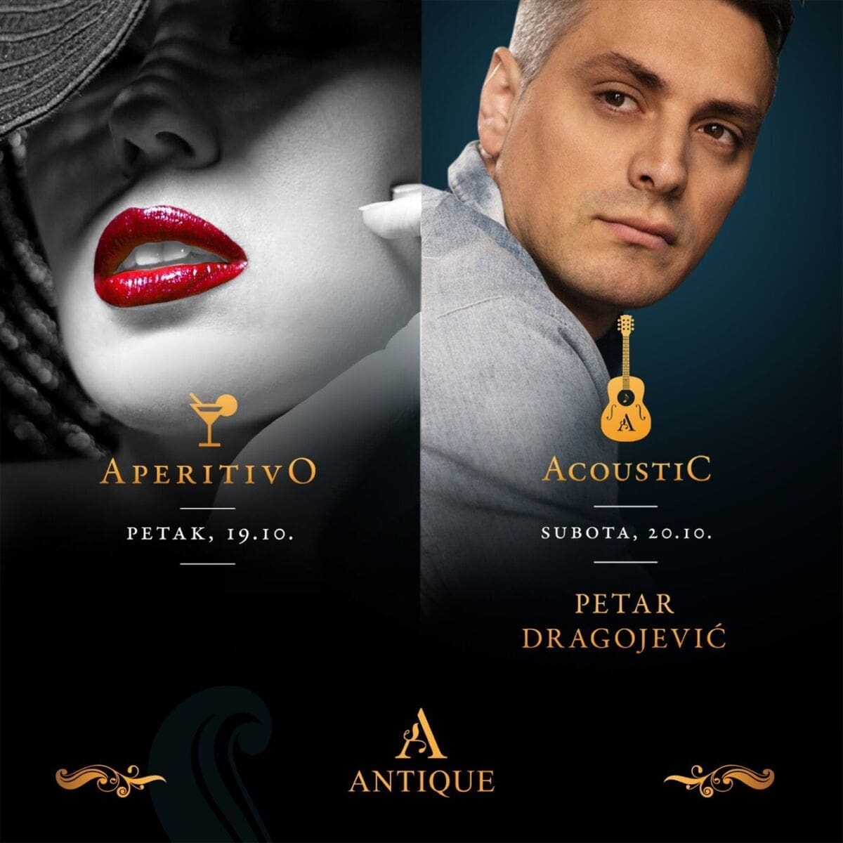 Nakon prošlotjednog, sjajnog nastupa Giuliana & Diktatora, sutra se na pozornicu Antique bara penje Petar Dragojević, za čijim akustičnim koncertom vlada ogroman interes. Uz hitove "Otvoren prozor", "Prva i jedina", "Ovih dana", "Istog smo roda", "Potpisujem" i brojne obrade, popularni Splićanin garantira večer za pamćenje. Početak koncerta je u 22 sata, a ulaz je slobodan. Informacije i rezervacije na broj 099 332 2281.