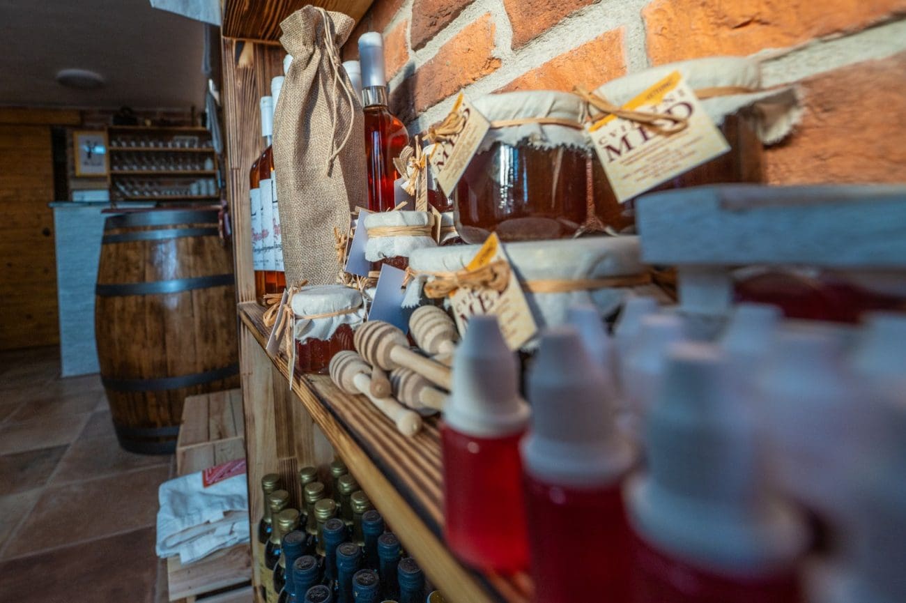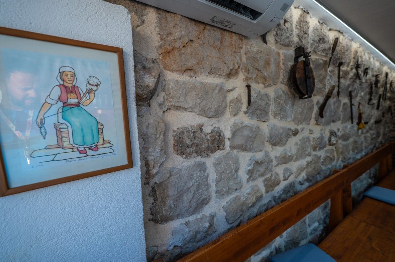 Pored kuće zuje pčele – dva stacionarna pčelinjaka rade na kadulji i vrijesku, no domaćica im se približava s oprezom: “Šest puta završila sam na hitnoj zbog alergije.” Teglica višecvjetnog meda za turiste stoji pet eura, obiteljsko pakiranje kilograma 16 do 18 eura, ovisno o sezoni.
