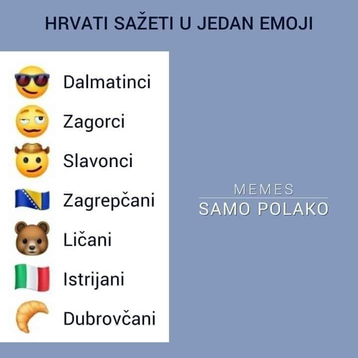 Internetom se širi zafrkancija prema kojoj su građani Hrvatske opisani emotikonima sukladno gradovima u kojima žive.