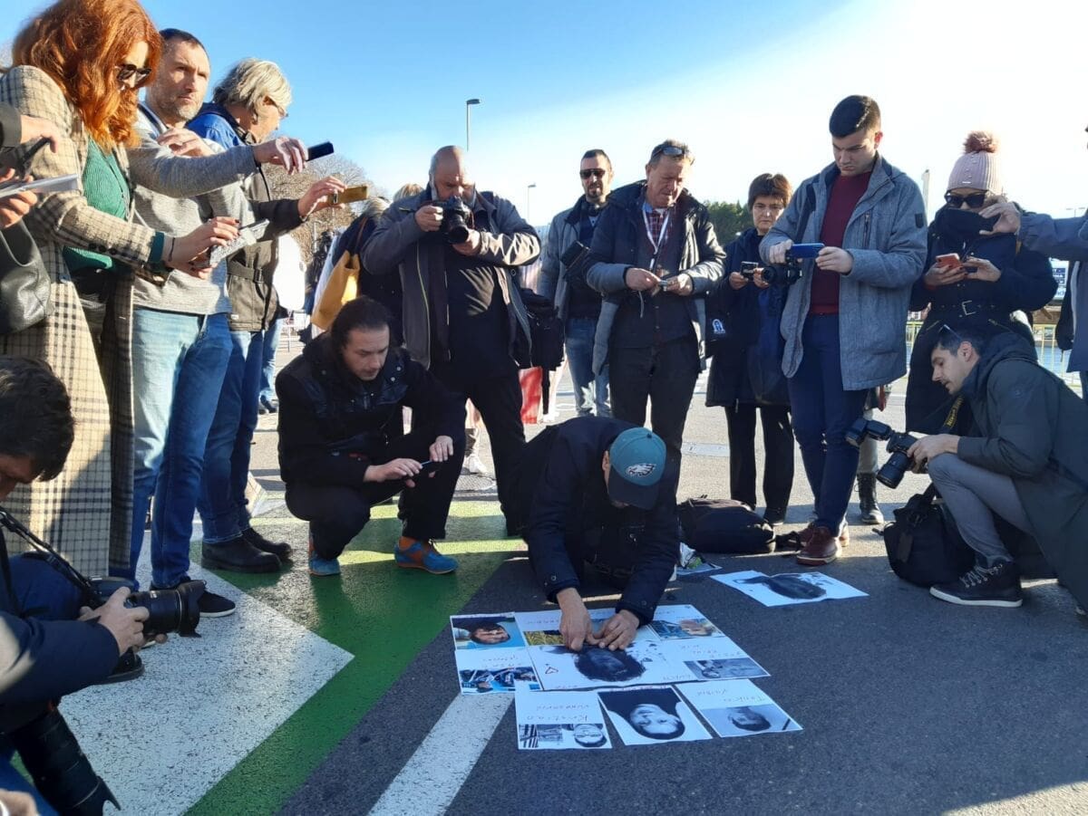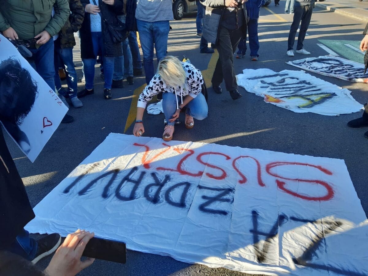 15:31 - Na mjesto gdje se se dogodilo ubojstvo, postavljeno je nekoliko transparenata, većim dijelom upućenih pravosuđu.
