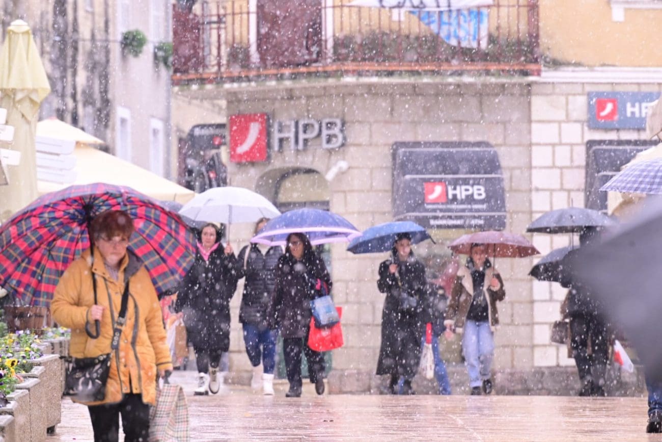 Kako je i bilo najavljeno, sredozemna ciklona donijela je veliku promjenu vremena, a velik dio srednje Dalmacije danas ima pravi zimski ambijent. Tako snijeg pada u Dalmatinskoj zagori, osobito u Zamosorju, Cetinskoj krajini i dijelu Zabiokovlja.