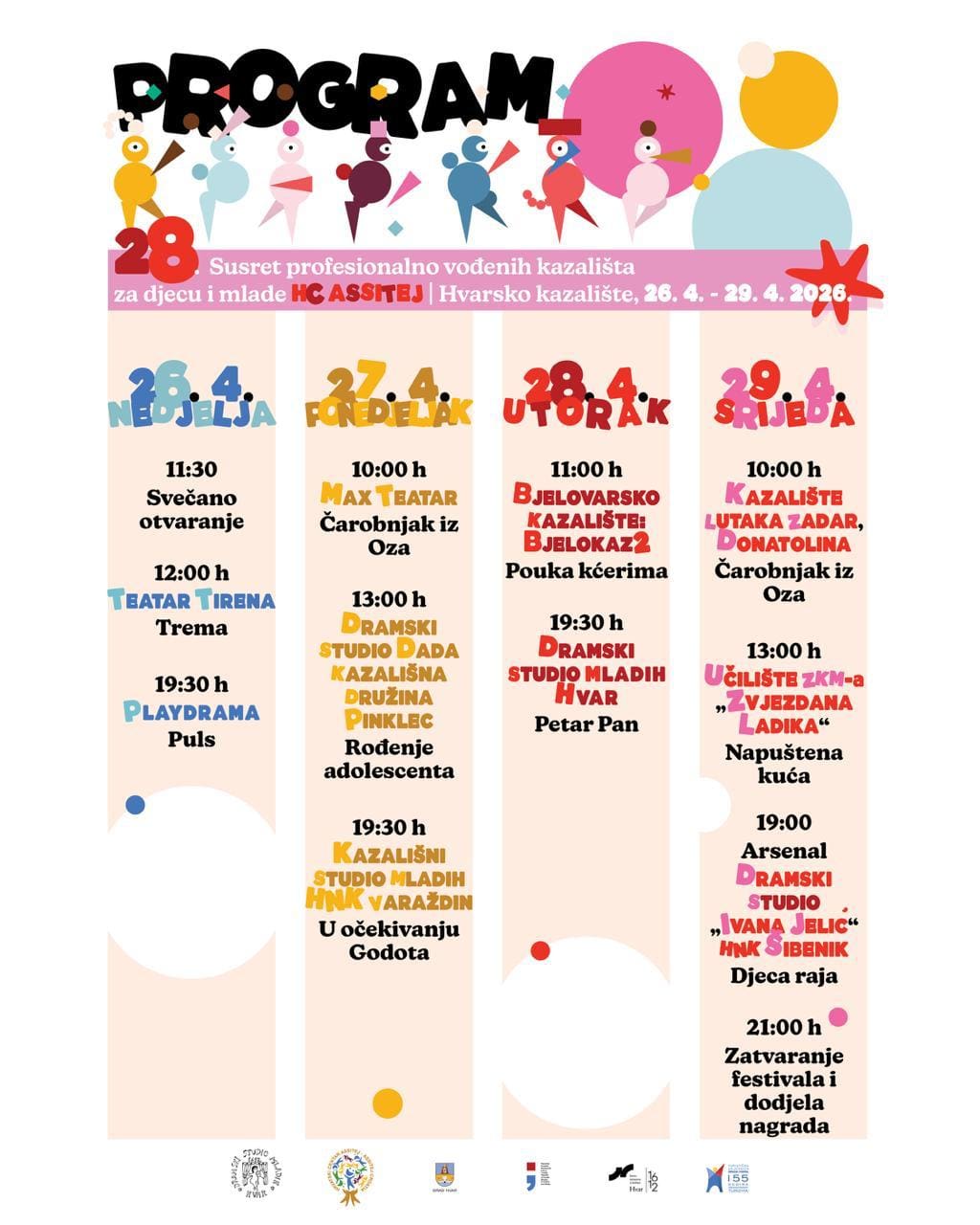 U suradnji s Hrvatskim centrom ASSITEJ, Gradom Hvarom i Javnom ustanovom u kulturi HVAR 1612., 28. Susret donosi umjetnost djece i mladih u inspirativan prostor najstarijeg javnog kazališta Europe, u jedinstvenom otočnom ambijentu.