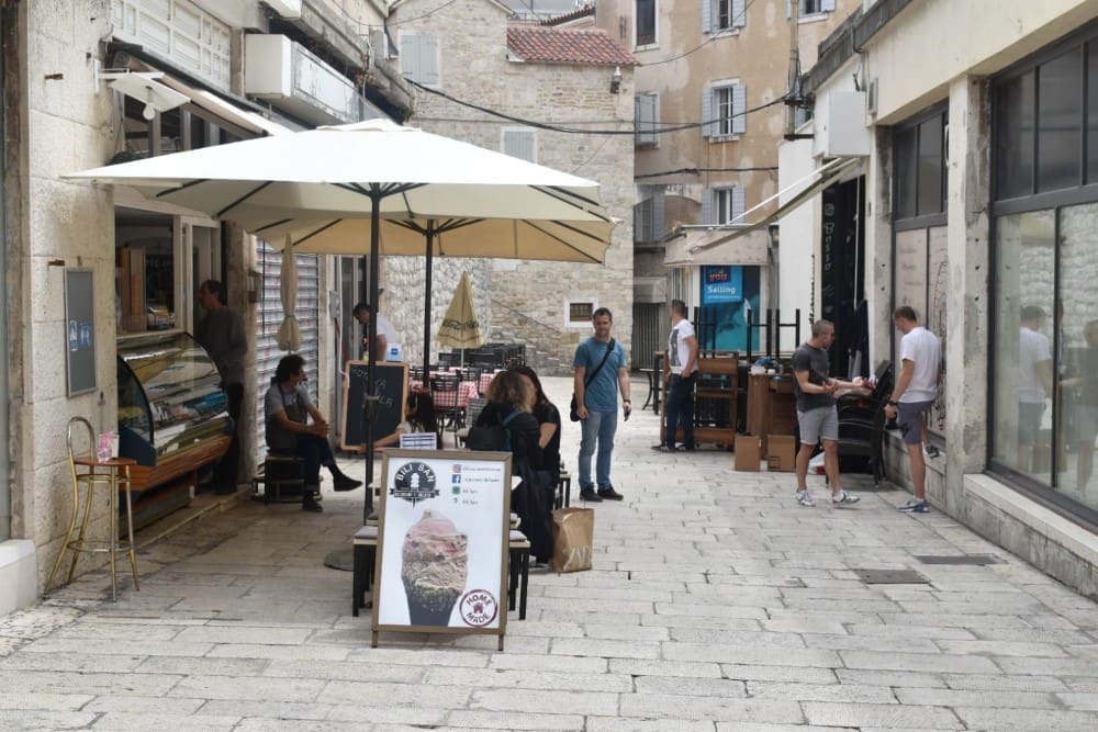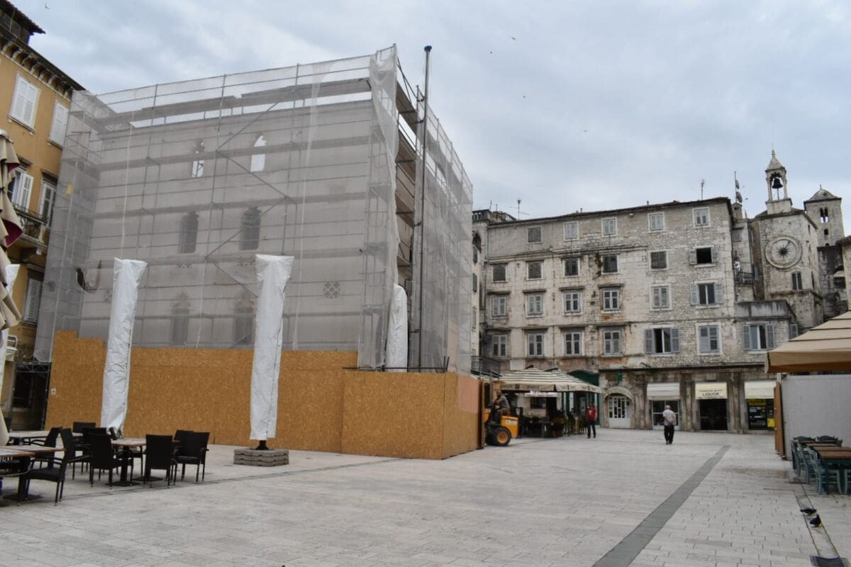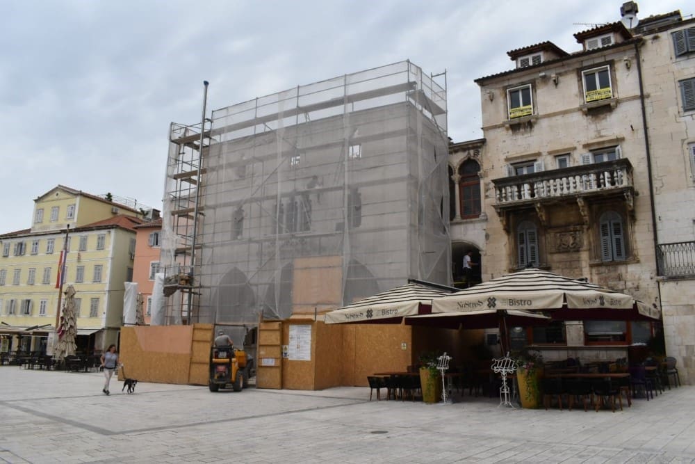 Šećući najlipšim gradom na svitu, kako Splićani vole reći za svoj grad, naišli smo na velik broj radova po gradu. Osim što se uređuju bašte kafića i restorana koji se tek spremaju otvoriti u skladu s novim uvjetima, u jeku su i radovi na hotelu Ambasador, ali i na Staroj gradskoj vijećnici. Podsjetimo, u ožujku su završena arheološka istraživanja u sklopu EU projekta „Palača života – grad mijena“. Istraživanja su se provela kako bi se otkrili i zaštitili arheološki slojevi i strukture prije same adaptacije i uređenja ove zgrade u samom srcu Splita, na Pjaci.