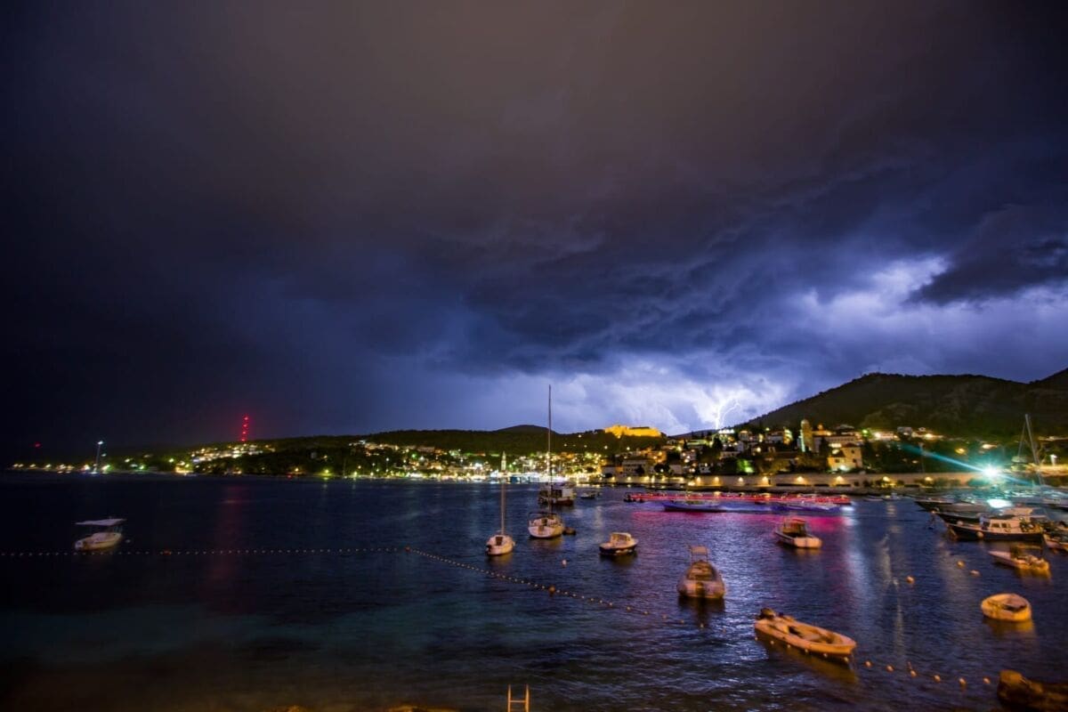 Linija grmljavinskih oblaka u nedjelju navečer i u noći na ponedjeljak protutnjala je preko sjeverne i osobito srednje Dalmacije. Nestabilne vremenske prilike donijela nam je ciklona u višim slojevima troposfere. Zbog toga je mjestimice bilo jačeg grmljavinskog nevremena, ponegdje praćenog većim količinama oborina.