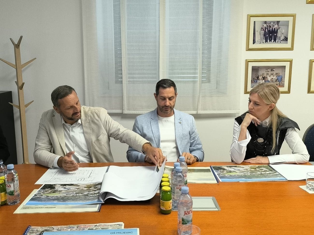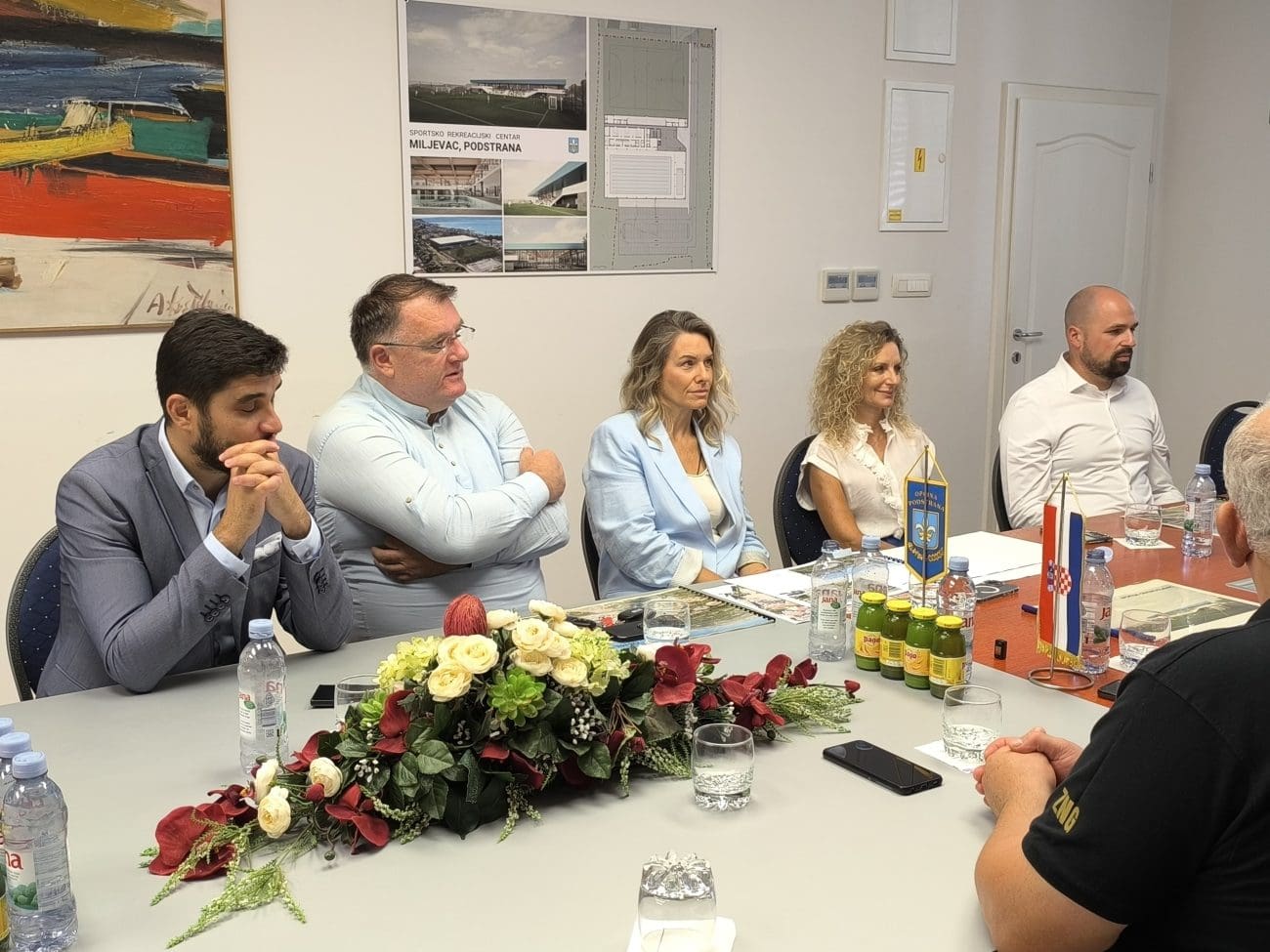 U nastavku posjeta, izaslanstvo je obišlo gradilište nove sportske dvorane. Radovi su u punom jeku, a dinamika realizacije je u skladu s planiranim. Riječ je o trodijelnoj dvorani s kapacitetom od 448 sjedećih mjesta koja će značajno unaprijediti sportsku infrastrukturu općine. Tijekom obilaska razgovaralo se o mogućnostima dodatnog sufinanciranja projekta, s posebnim naglaskom na funkcionalnost objekta: dvorana se nalazi uz osnovnu školu Strožanac te će u jutarnjim satima služiti za izvođenje nastave tjelesnog i zdravstvenog odgoja učenika, dok će u popodnevnim satima biti na raspolaganju sportskim klubovima i udrugama za treninge i natjecanja.