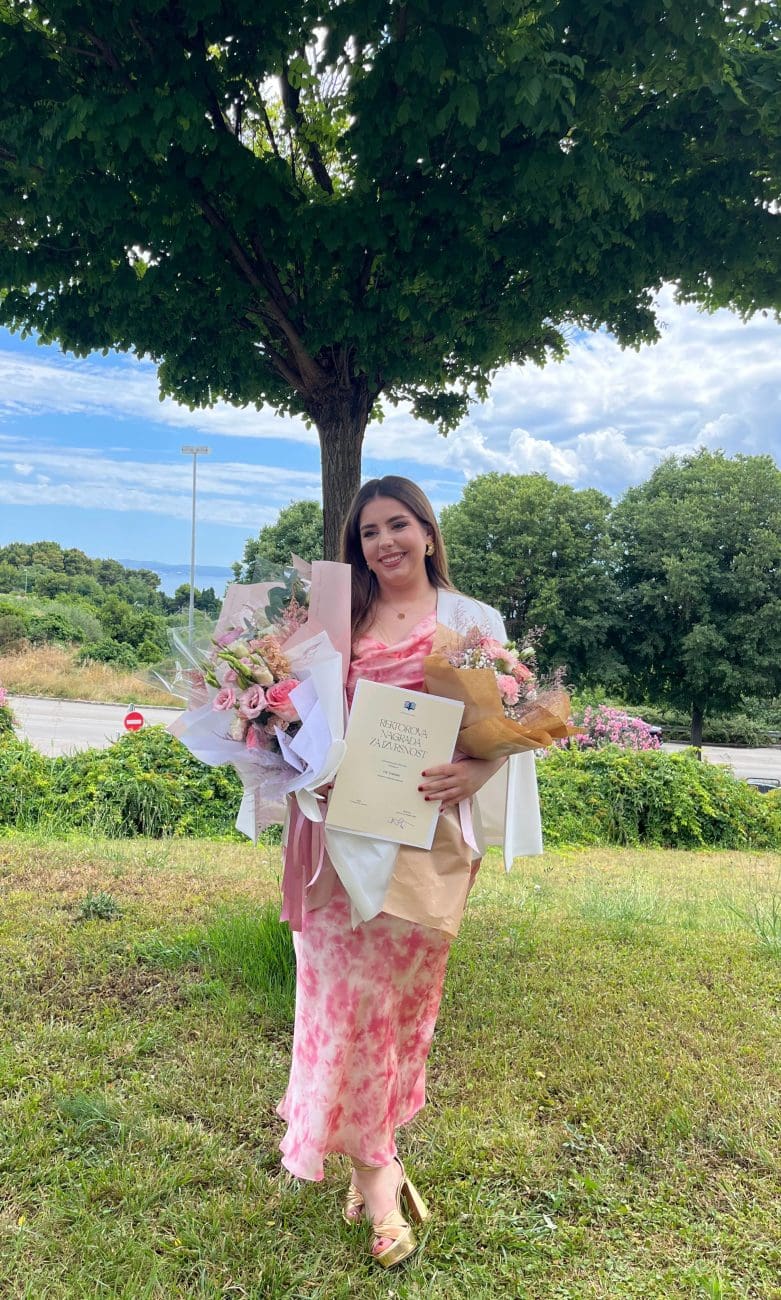 Prvu godinu studija je zaključila s prosjekom 5,0 kada je prvi put čula za Rektorovu nagradu. Shvatila je da ispunjava sve uvjete. Prijavila se i dobila je što joj je bio određeni "vjetar u leđa" za daljnje studiranje. U početku je prema nagradi imala strahopoštovanje, a danas drži da je to prilika i poticaj za dalje. Uvjerava da je nije nemoguće dobiti, a za glazbu kaže kako je za nju lijek i pravi put u životu.
