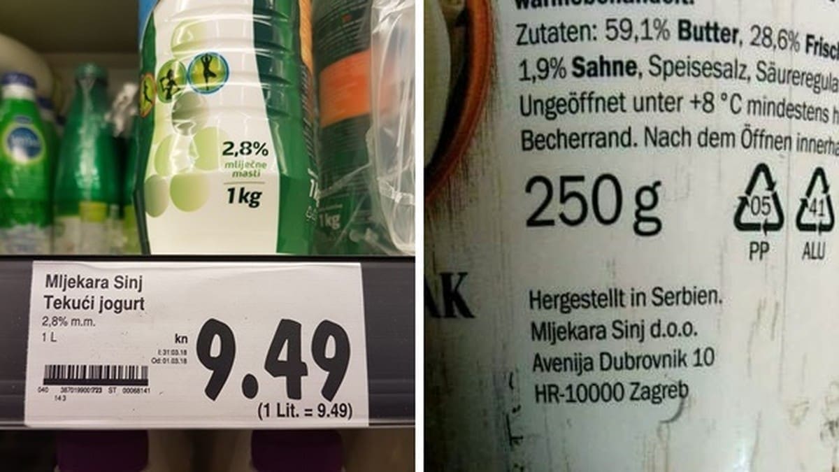 Prije godinu dana redakcija Ferate je dobila fotografiju iz jednog trgovačkog centra u kojemu se prodaje tekući jogurt iz Mljekare Sinj. Nije im izgledalo originalno, pa priču nisu objavili. Ali danas se na društvenoj mreži pojavila fotografija jogurta kupljenog u Austriji. Jogurt je proizveden u Srbiji od strane Mljekare Sinj iz Zagreba! - javlja Ferata.