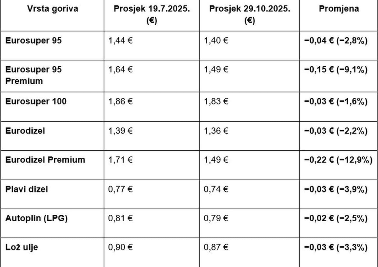 Analizu je izradio portal Nafta.hr na temelju službenih objava maloprodajnih cijena goriva na dan 19. srpnja 2025. i 29. listopada 2025.