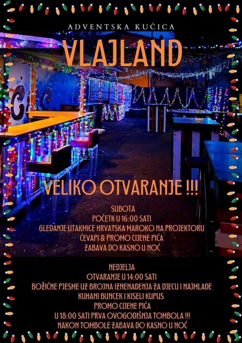 Adventska kućica simpatičnog naziva 'Vlajland' i ove godine nastavlja sa svojim humanitarnim karakterom. 'Vlajland' sutra otvara u Dugom Ratu, a sav prihod koji se skupi bit će doniran za udrugu 'Zagrljaj' koja pomaže djeci s posebnim potrebama. Udruga od 2020. godine djeluje i u Dugom Ratu.