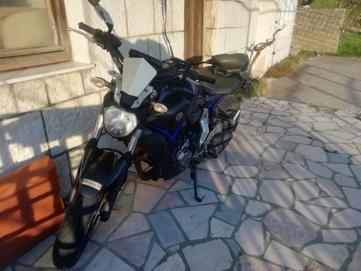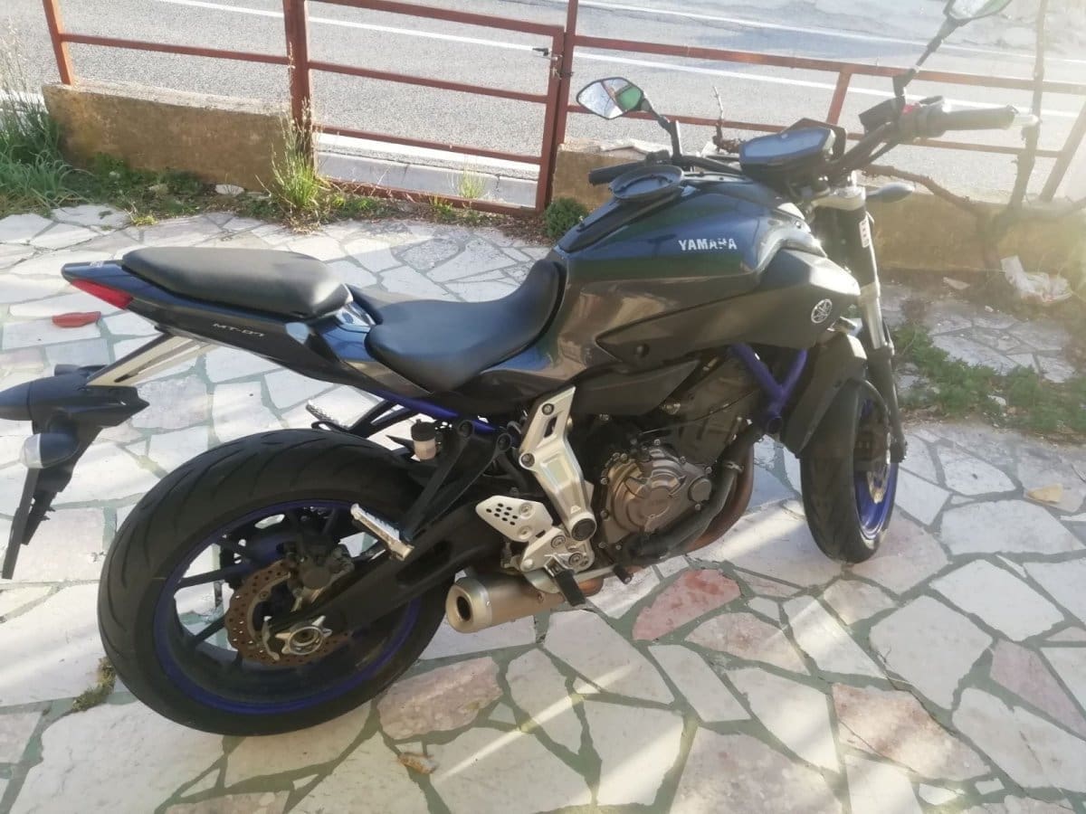 Radi se o Yamahi MT-07 splitski tablica u plavo-crnoj kombinaciji.