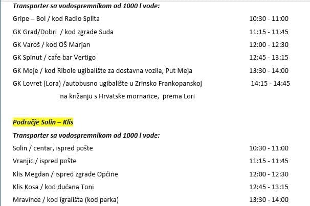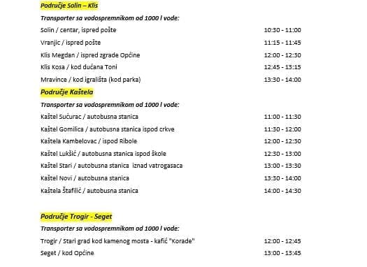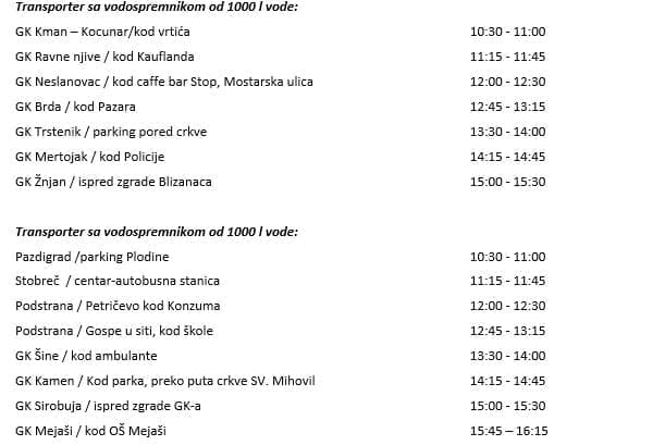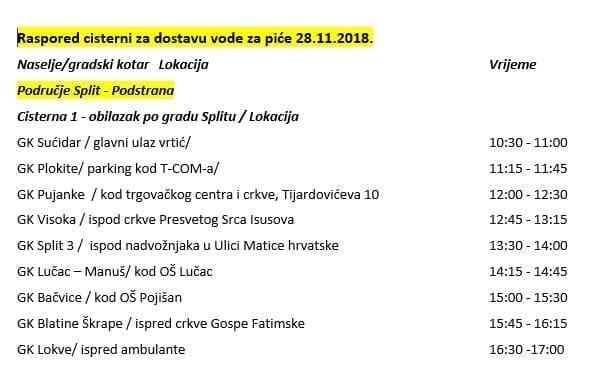 Sukladno nastaloj situaciji Tvrtka Vodovod i kanalizacija d.o.o. će za dan 28.11.2018.g. stanovništvo opskrbiti pitkom vodom cisternama prema rasporedu kojeg šeljamo u prilogu.