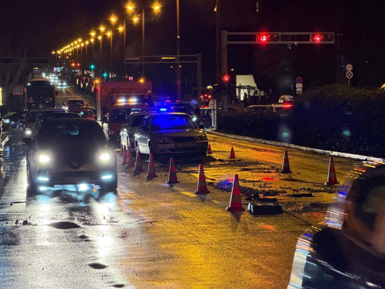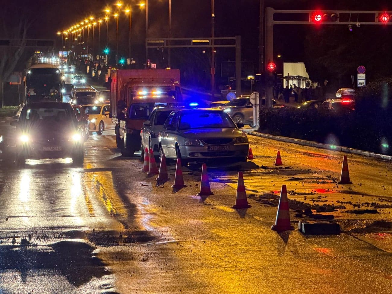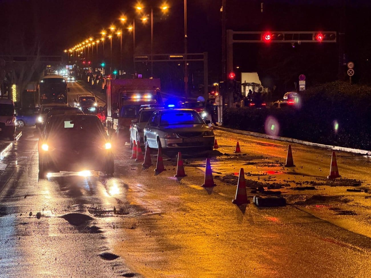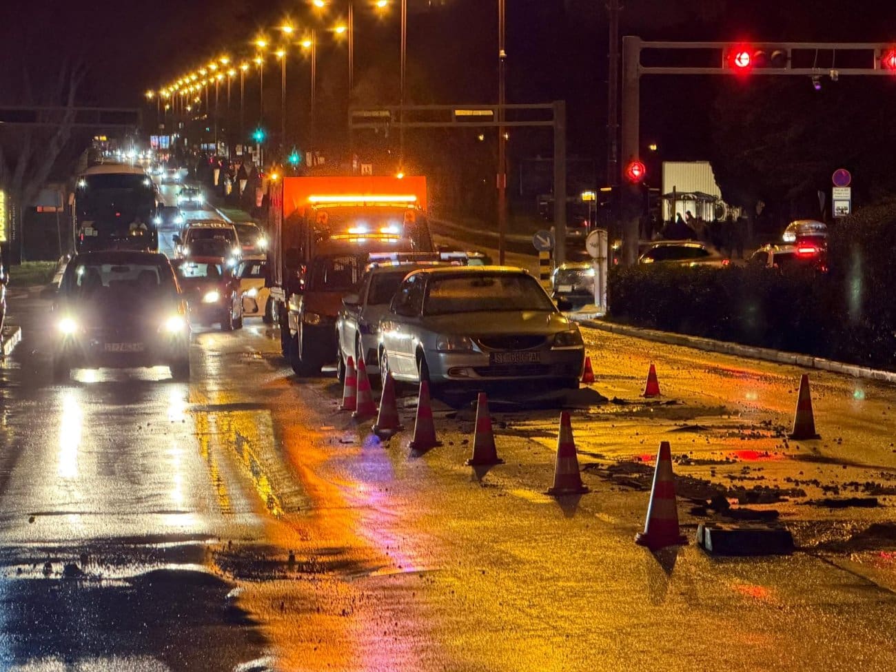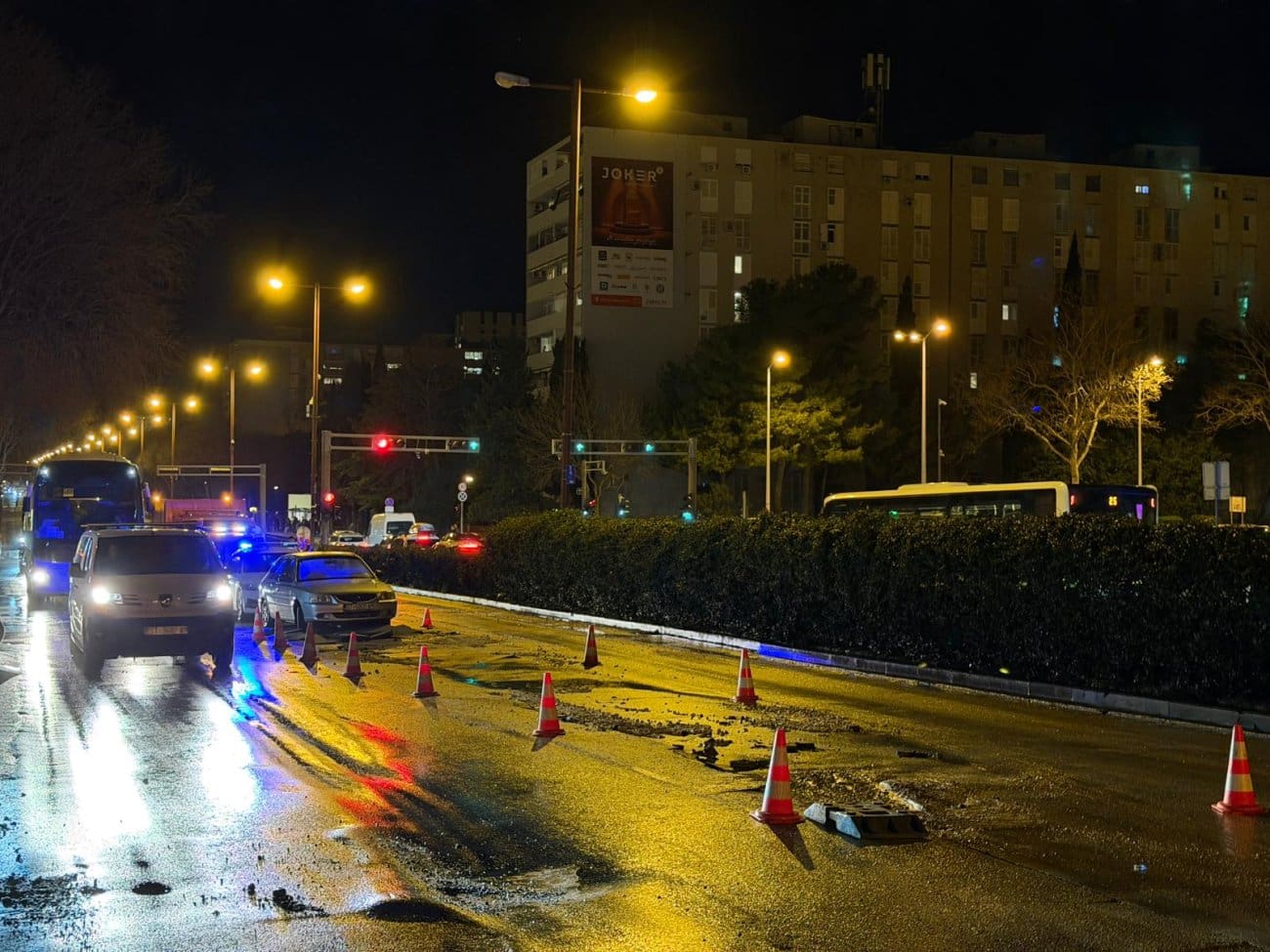 Prema informacijama s terena, voda se izlila na kolnik, zbog čega je promet otežan i usporen. Vozačima se savjetuje dodatan oprez zbog mokrog i skliskog kolnika, kao i mogućih privremenih regulacija prometa kada krene sanacija kvara.