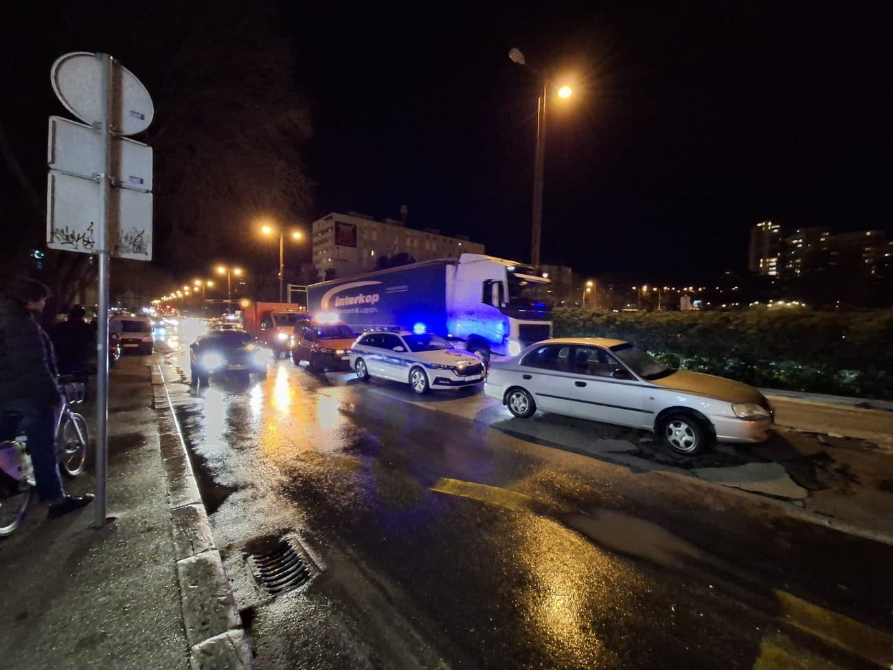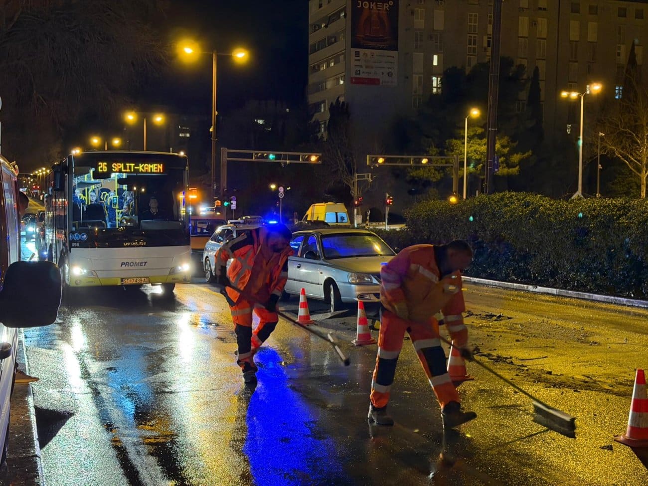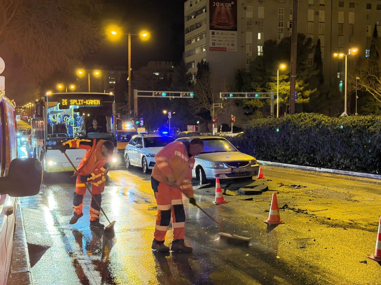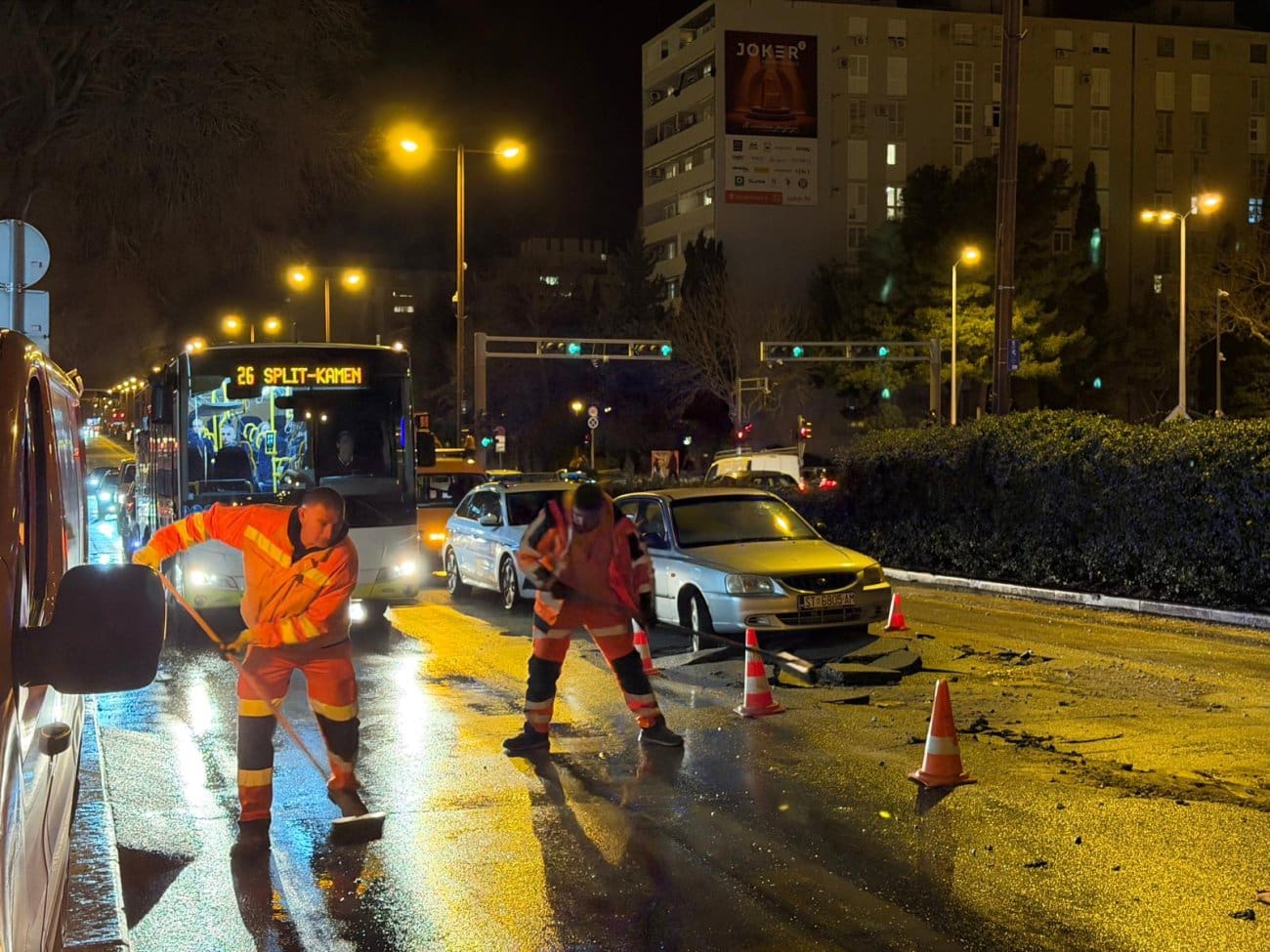 Puknuće vodovodne cijevi izazvalo je u večernjim satima probleme u prometu na Poljičkoj cesti u Splitu, u blizini Prime 3.