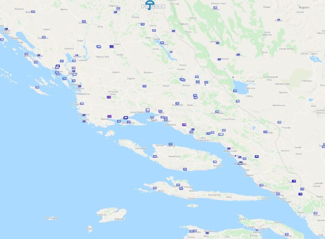Kako je i bilo najavljeno, obilne oborine pale su zadnja 24 sata na području Dalmacije. Najviše, preko 120 litara palo je u trogirskom zaleđu. U Trogiru i okolici palo je nešto manje od 100 litara.