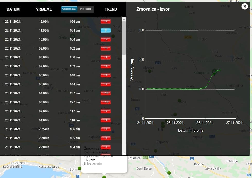 Osim što je nabujala, rijeka Žrnovnica je poprimila smeđu boju, a to se vrlo brzo odrazilo na zamućenost vode unutar žrnovačkog vodovoda. Kako se može vidjeti na fotografijama, voda je vidno smeđe boje.