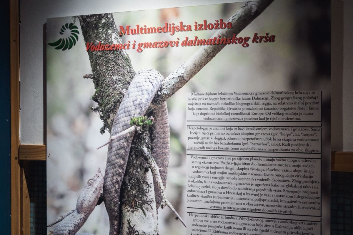 "Nastojali smo predstaviti najvažnije predstavnike vodozemaca i gmazova koji obitavaju u Splitsko-dalmatinskoj županiji, ali i ukazati na njihovu ugroženost i zaštitu, kao i na sam rad Prirodoslovnog muzeja. Izložbu smo pripremali pola godine, a bit će otvorena do daljnjega", kazao nam je Tino Milat prilikom otvorenja izložbe te pojasnio: