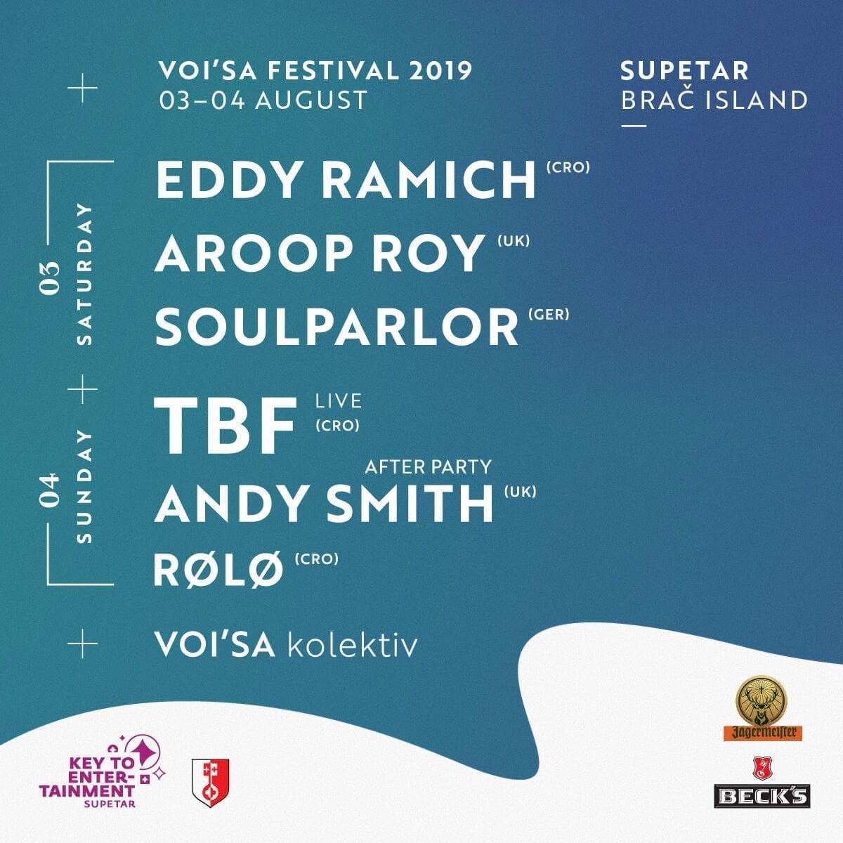 Večernji program starta u 21:00 h uz Eddy Ramicha, najstarijeg residenta Voi'Sa kao i nezaobilazno ime svih važnijih House okupljanja u Hrvatskoj. Nešto dublje u noć nas uvodi Aroop Roy, londonski dj i producent kojeg trenutno smatraju jednim od najutjecajnih artista kada se govori o kvalitetnom mixu Housea, Broken beata, organskog Afro zvuka i Funka. Njegova izdanja podržavaju svi eminentni izvođači sličnog žanra poput Gilles Petersona, Soul Clapa, Artworka, Detroit Swindlea, Karizme, Joey Negra, Laurent Graniera i mnogi drugi.