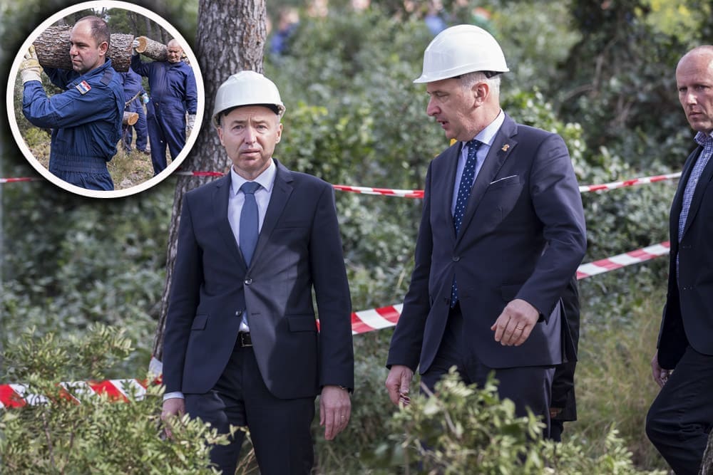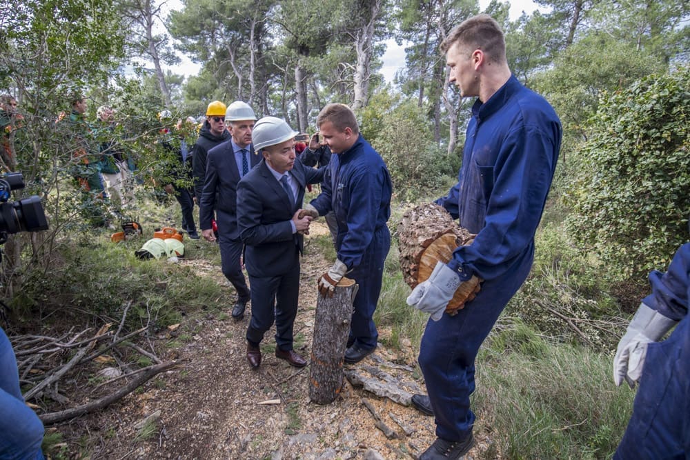 Potpredsjednik Vlade i ministar obrane Damir Krstičević i gradonačelnik Splita Andro Krstulović Opara obišli su danas pripadnike Hrvatske vojske angažirane na iznošenju drvne mase i sanacije terena na području Park-šume Marjan u Splitu.