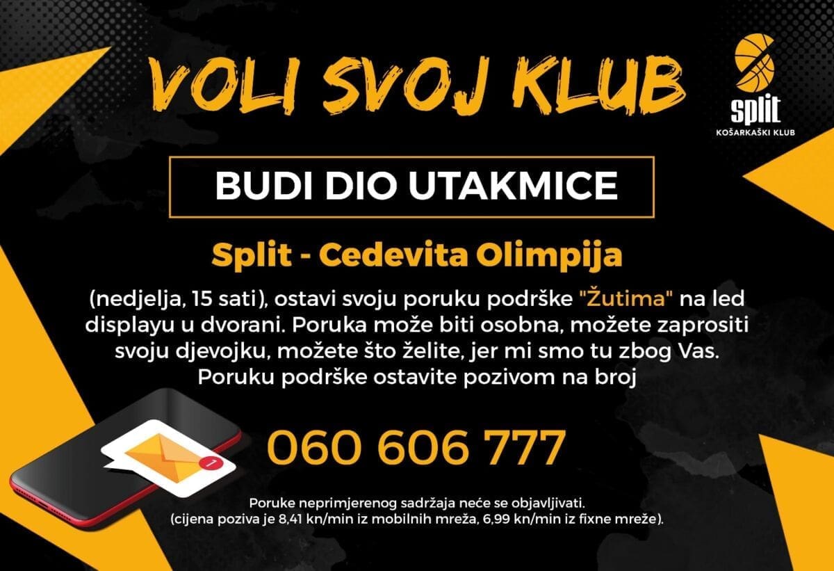 Vašu poruku igrači će krajičkom oka vidjeti na led displeju u dvorani, evo za početak na utakmici Splita i Olimpije u ovu nedjelju u 15 sati.