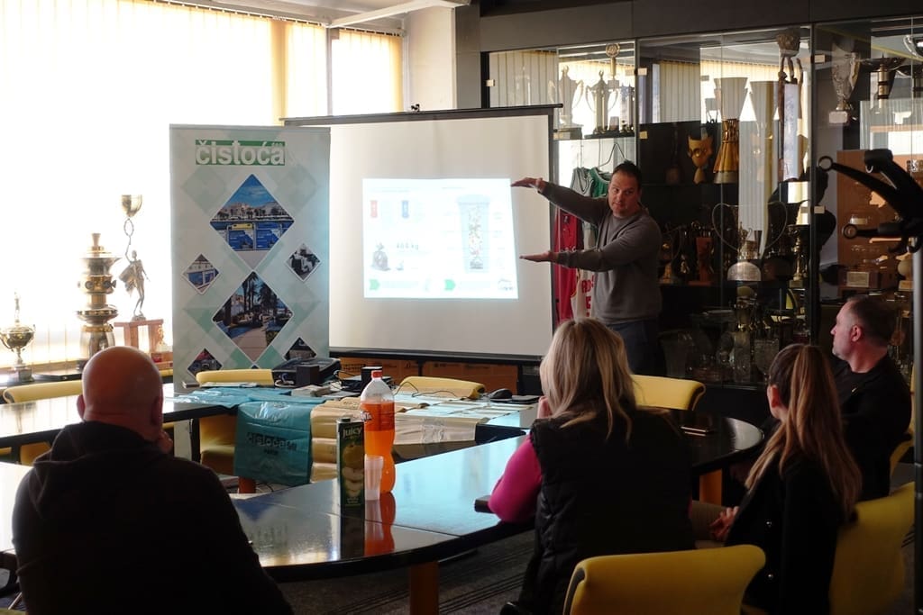 Predavač je bio predstavnik splitske Udruge za edukaciju građana , stručni specijalist zaštite okoliša Mate Herceg koji je educirao zaposlenike i igrače KK Split o otpadu kao jednom od najvećih ekoloških problema današnjice.