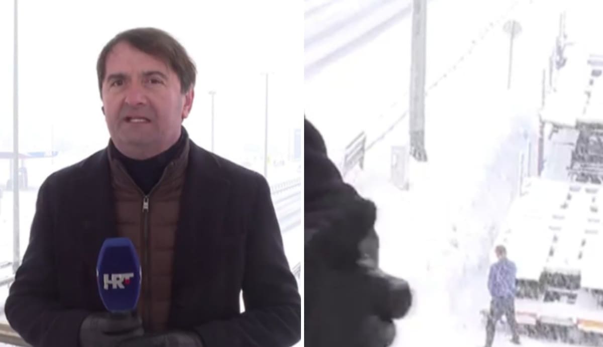 Bizarna stvar se dogodila u programu HRT-a. Dok se novinar Edi Škovrlj javljao s terena okružen snijegom i ledom, kamera je zabilježila zanimljiv trenutak iza njegovih leđa.
