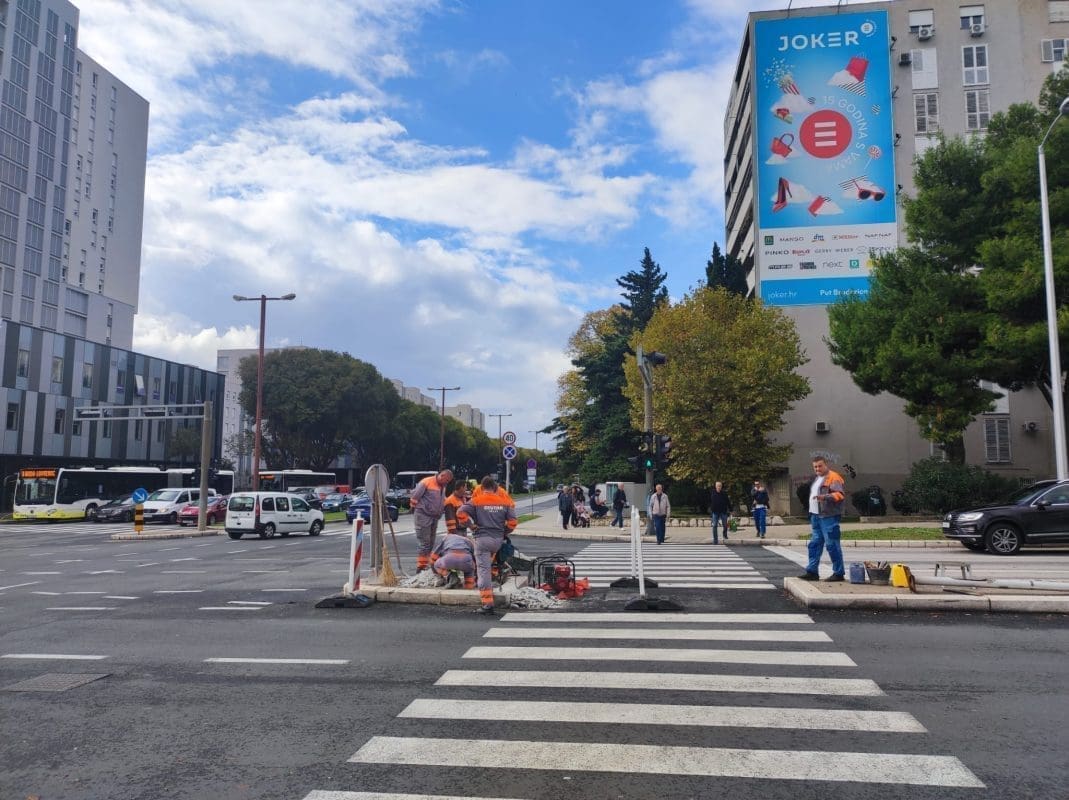 Na mjestu nesreće, djelatnici 'Cestara' rade na sanaciji i ponovnom postavljaju semafora u kojeg je udario vozač Toyote.