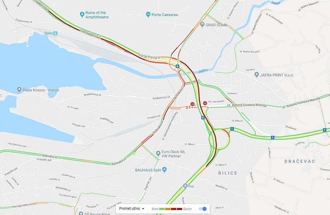 Od čitatelja doznajemo da su nakon sudara nastale prometne gužve, što potvrđuje i Googleova procjena gustoće prometa.