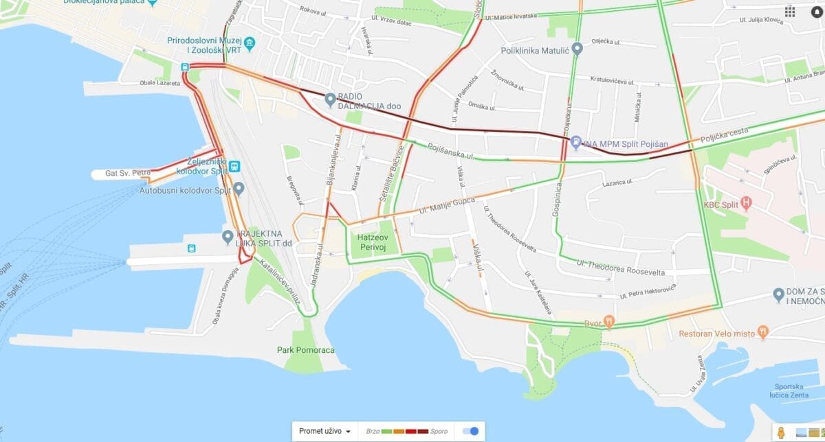Velike gužve vladaju na prilazima trajektnoj luci u Splitu. Zvonimirova ulica je, uobičajeno za ovaj dio godine, zakrčena već od benzinske pumpe na Pojišanu. Vozi se vrlo usporeno, povremeno s većim zastojima. Promet teče vrlo usporeno i u samoj trajektnoj luci.