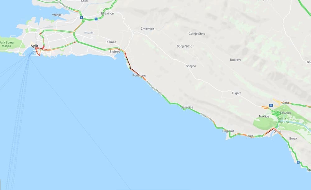Od ranog jutra stvaraju se gužve duž Jadranske magistrale. Kolona na ulazu u Split proteže se skoro 10 kilometara, sve do Grljevca. U Splitu se stvaraju gužve na prilaznim cestama trajektnoj luci - Zvonimirovoj i Zagrebačkoj ulici.