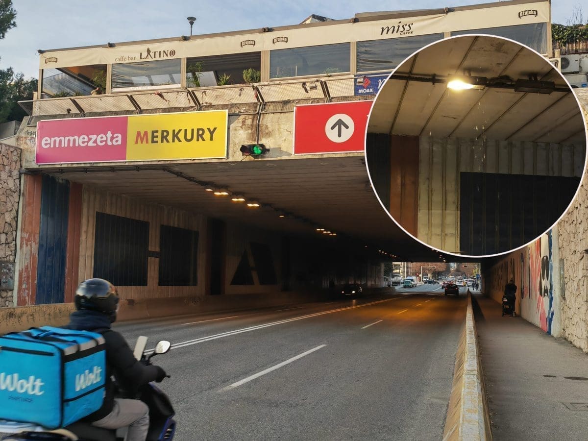 Voda je procurila u tunelu u Dubrovačkoj ulici. I to na spojevima gdje se propuštaju prevelike količine vode, javili su nam najprije čitatelji. Uz to, kako je vidljivo na fotografijama tu su i električne instalacije.