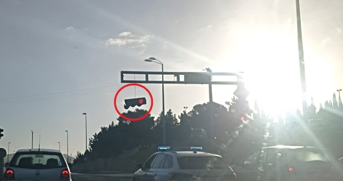 Vozači su pomalo zbunjeno promatrali prometu regulaciju, a nije poznato kako je ovan semafor završio u 'zraku'.