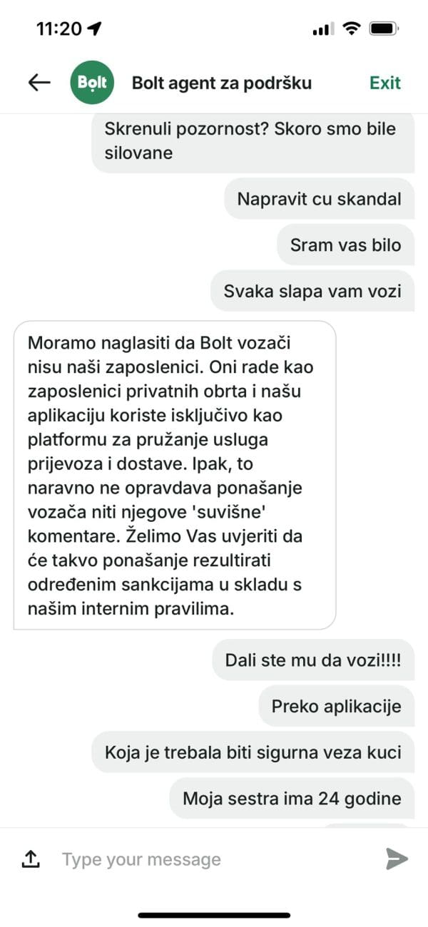 Djevojka ističe da redovito koristi usluge Bolta i da nikada do sada nije imala problema.