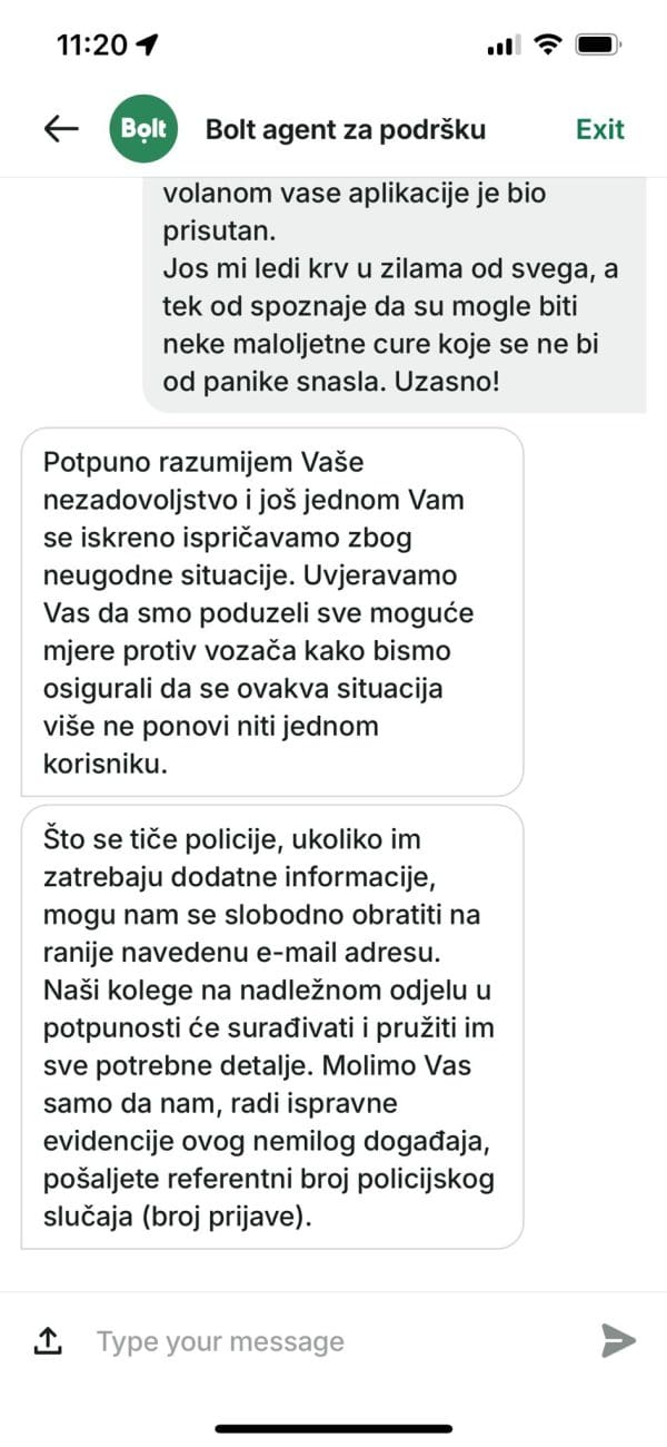 "Rekla sam im gdje se nalazimo i što se događa, i zamolila da ostanu sa mnom na liniji dok ne izađemo iz auta. Tek kad sam spomenula da sam nazvala policiju, vozač je naglo promijenio ponašanje i pristao stati – na benzinskoj postaji na Smokoviku."