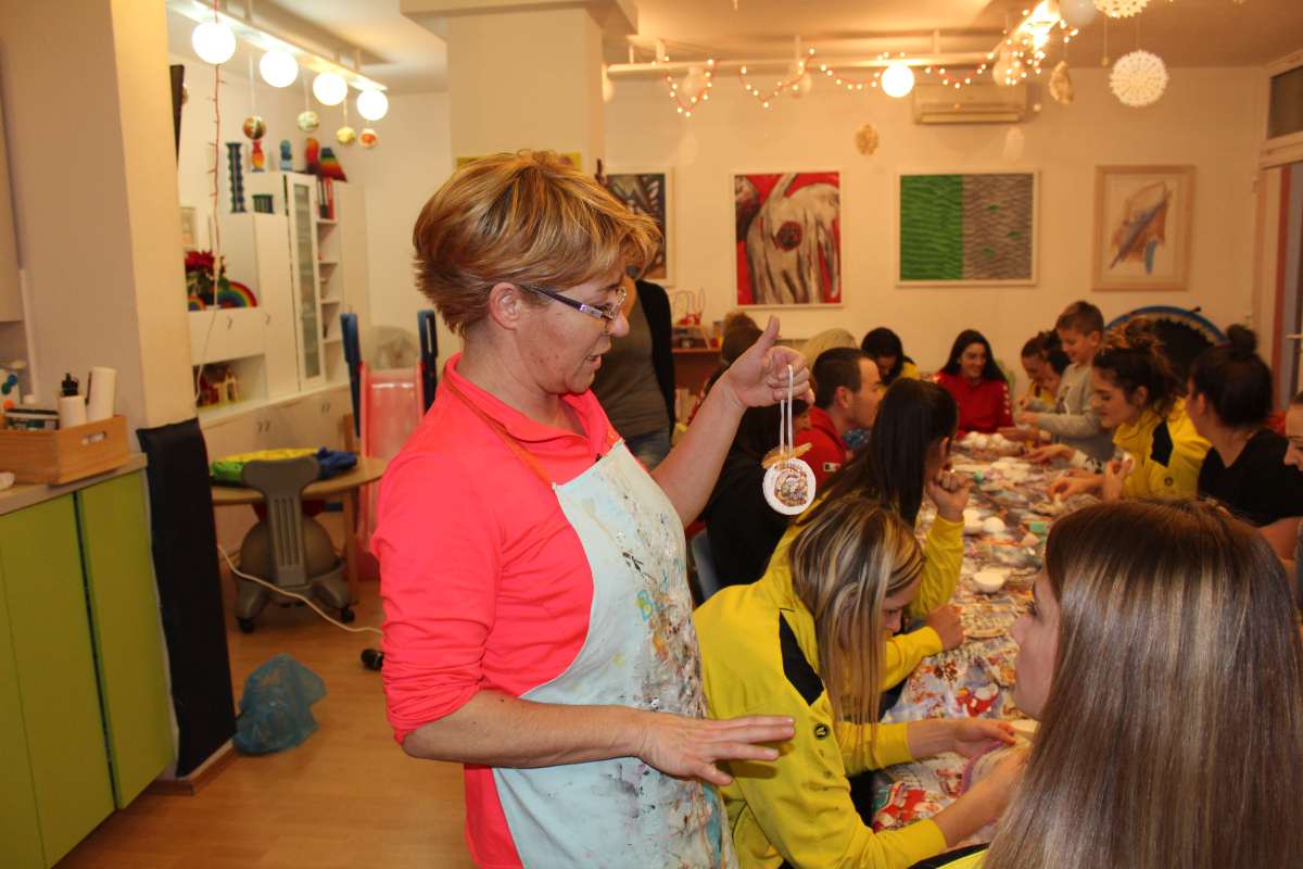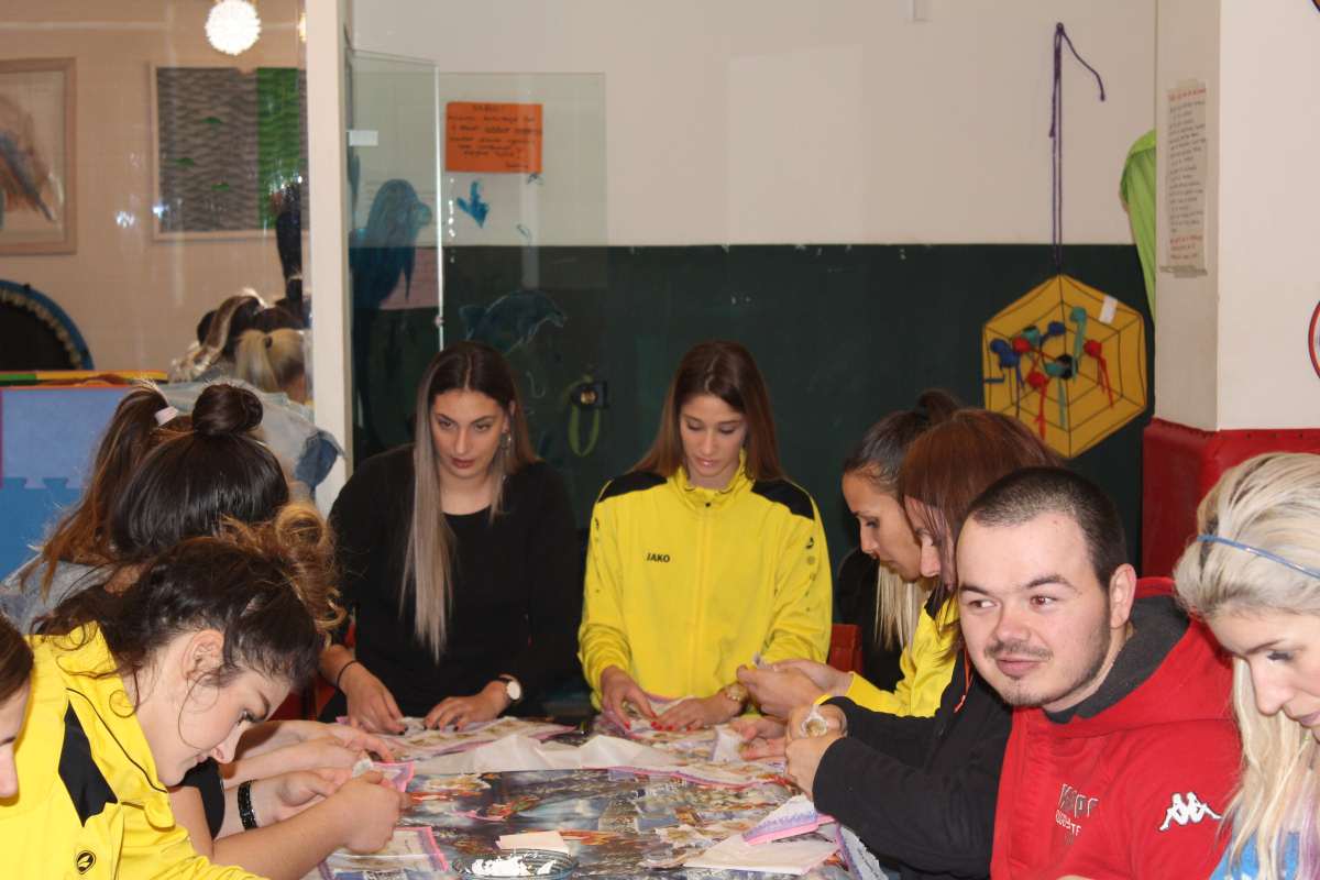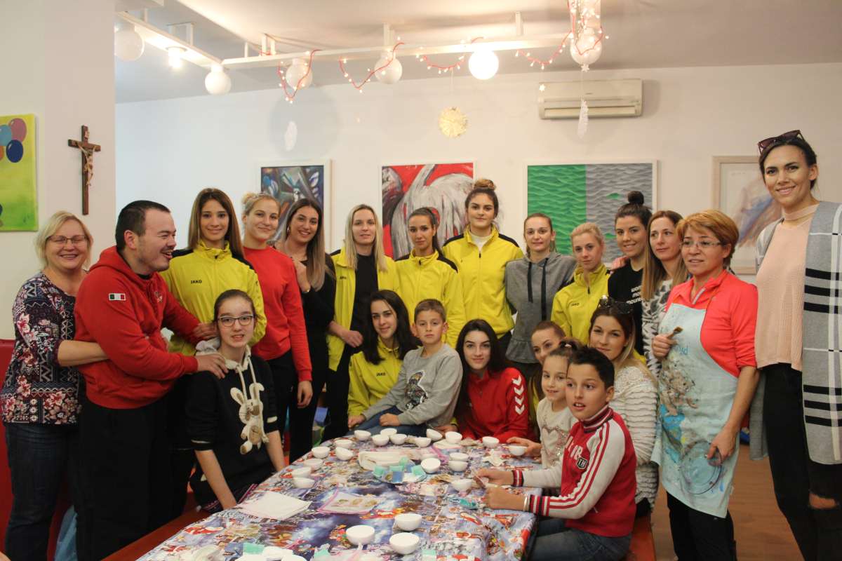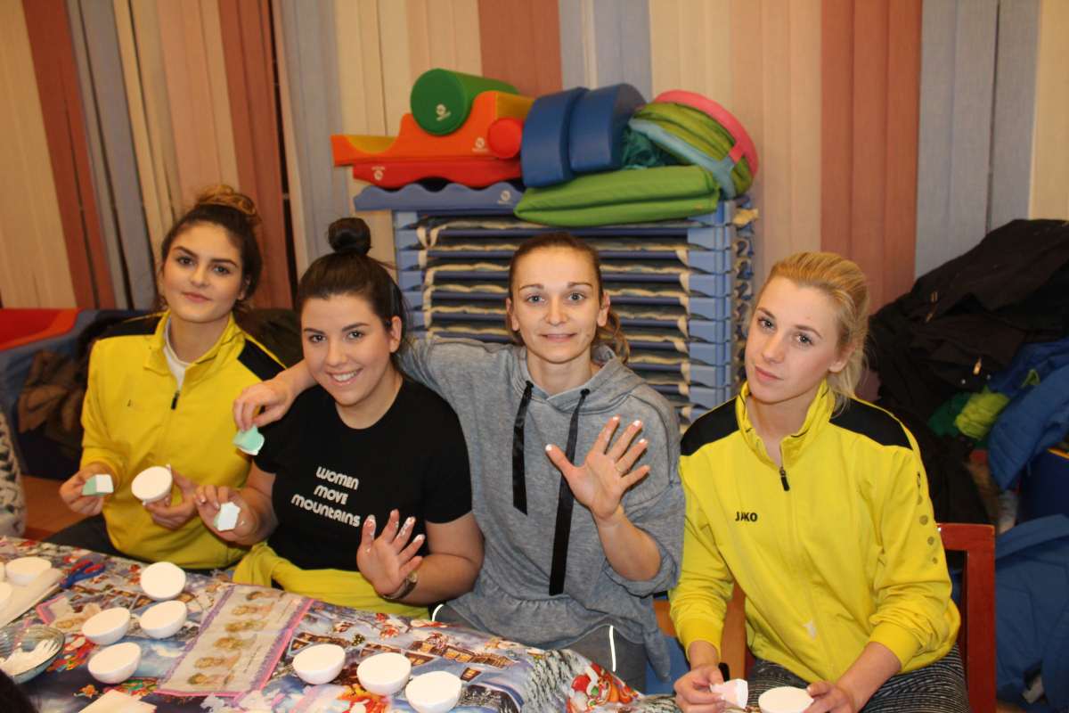 Dočekale su ih Dijana Aničić, predsjednica Udruge Anđeli, te djeca koja stalno posjećuju ovu Udrugu i u njoj kroz rad s logopedima i animatorima provode vrijeme. Splitske rukometašice donijele su poklon pakete i darovali ih malim 'Anđelima', te potom s njima zajedno izrađivale Božićne ukrase.