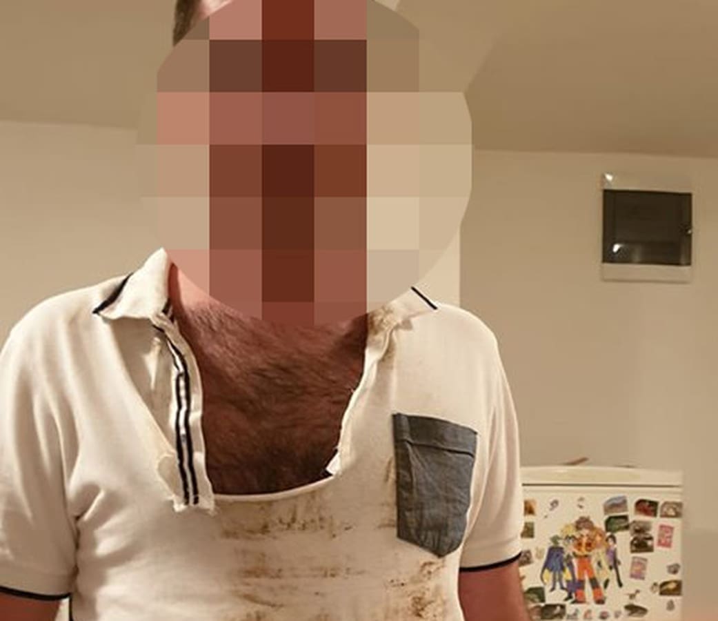 Jedan Ličanin na svom je Facebooku javno objavio svoju fotografiju na kojoj se vidi u poderanoj i zaprljanoj majici kratkih rukava. U opisu fotografije stoji "Napad imigranata pred kućom".