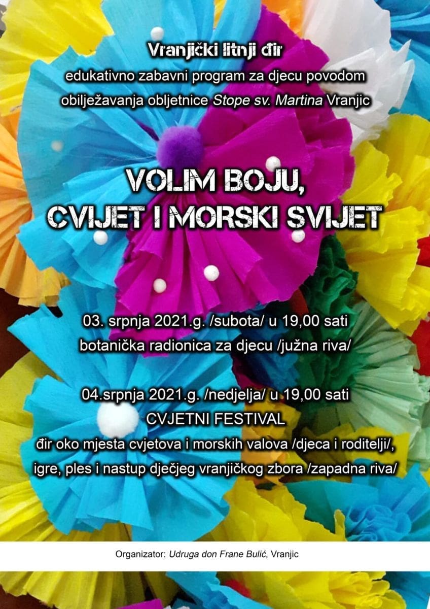 U nedjelju 4. srpnja 2021. s početkom u 19 sati upriličit će se Festival cvijeća pod nazivom „Volim boju, cvijet i morski svijet“, nakon čega će djeca i njihovi roditelji obučeni u kostime izrađene na radionicama likovne sekcije prošetati đir oko Vranjica povodom obljetnice postavljanja stopama sv. Martina“. Nakon toga slijedi na zapadnom dijelu rive ples, igra i nastup vranjičkog dječjeg zbora pod ravnanjem prof. Ivne Mandić.