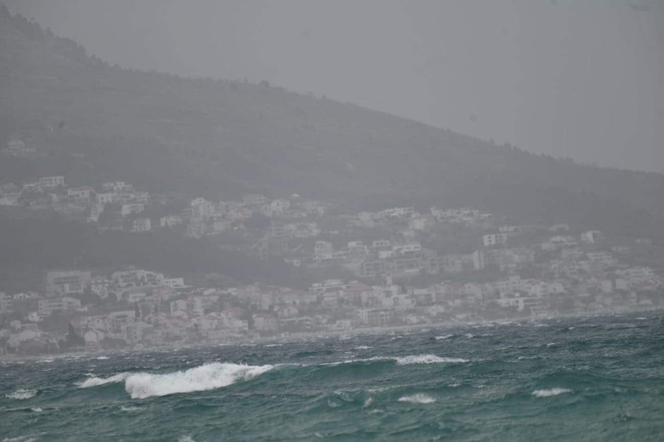 Dan su obilježili oblaci, jugo i povremena kiša. Prema podacima DHMZ-a, u 18 sati mjerna postaja Split Marjan bilježi prosjek od 15 m/s, što znači da je vjetar vrlo jak s olujnim udarima.