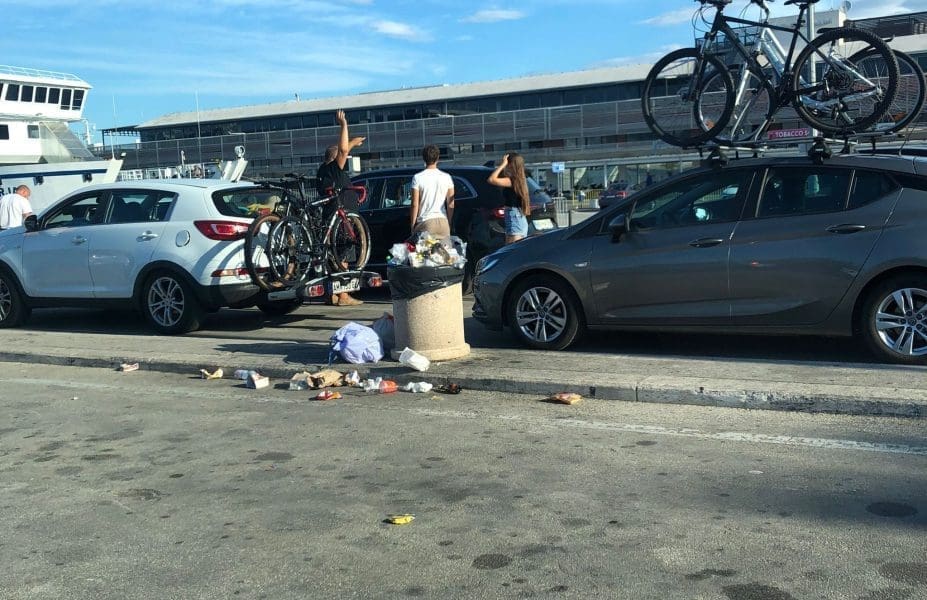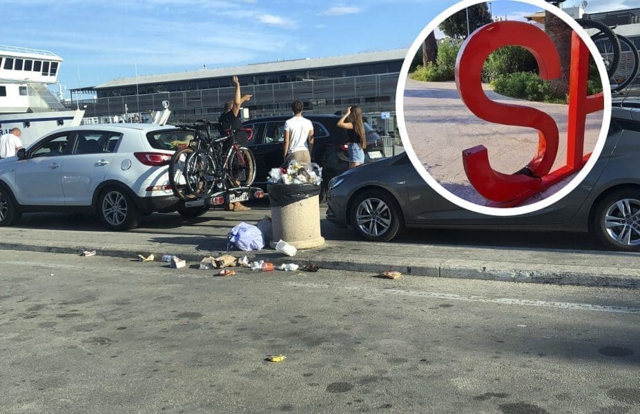 Tako su jutros koševi za smeće u Luci bili pretrpani, a razbijen je i popularni natpis "Split" pred kojim se gosti rado slikavaju.