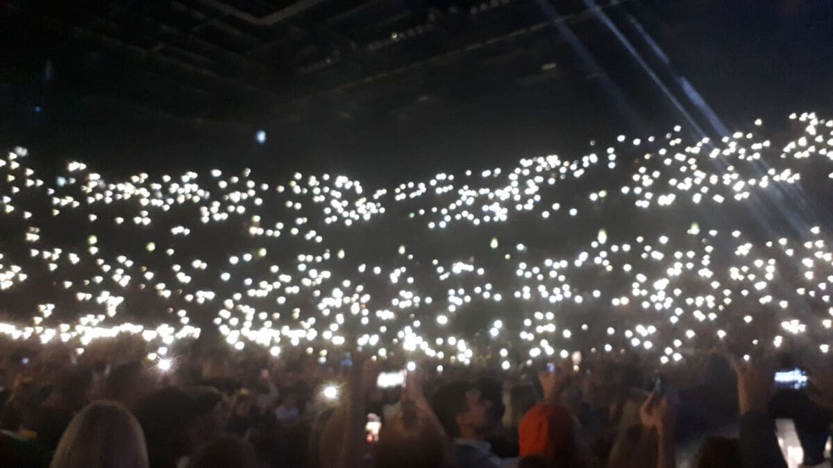 20:30 - U tišini mraka arene, upaljenih mobitela publika je osvijetlila arenu na čiju se binu popeo orekastar izvodeći nezaobilazni "Trag u beskraju".