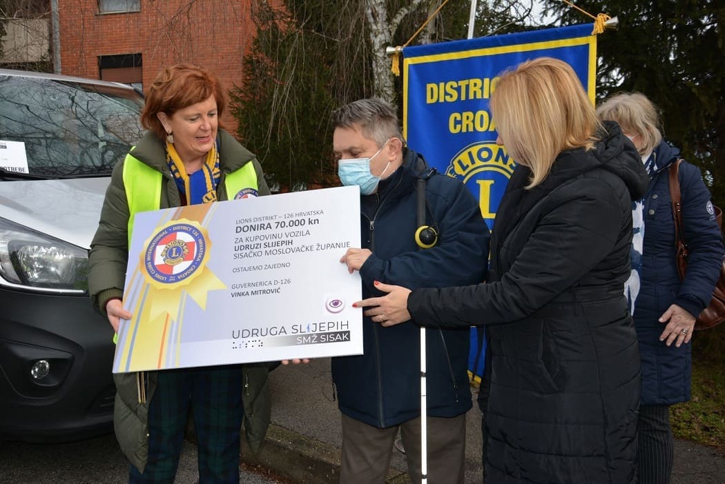 Iz Siska stiže lijepa priča. Predstavnici Lions Distrikta Hrvatske uručili su Udruzi slijepih Sisačko – moslavačke županije kombi vozilo koje su kupili uz pomoć prijatelja i donatora.