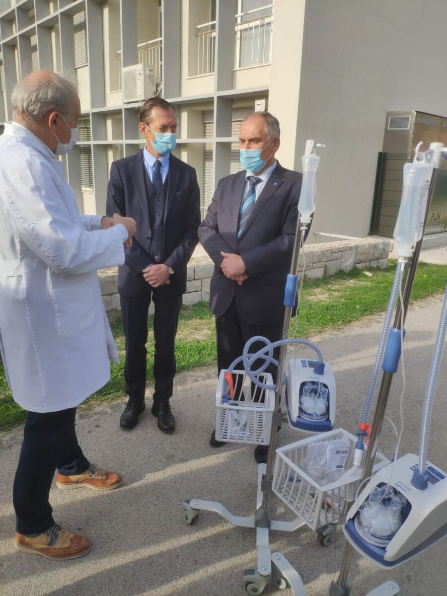 Ravnatelj Meštrović je uobičajeno bio jezgrovit, nakon zahvale županu Bobanu napomenuo je kako je trenutno 14 pacijenata na respiratoru dok ova dva uređaja služe upravo kako bi se izbjegla terapija respiratorom.