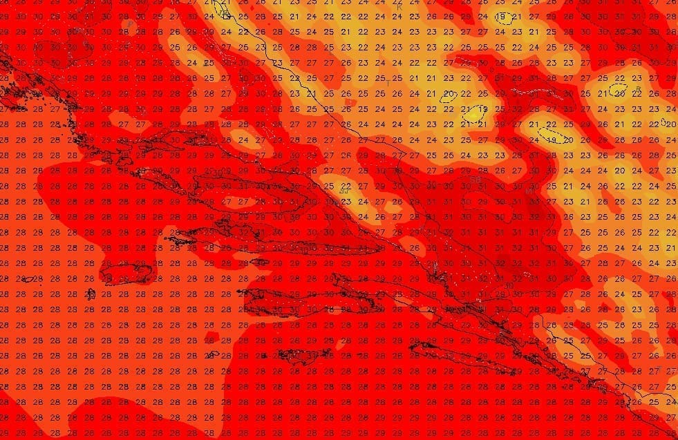 Sunčano će biti i tijekom subote. Ujutro tiho ili burin, danju većinom slab maestral. Minimalne jutarnje temperature zraka u Zagori od 13 do 18°C, uz obalu i na otocima od 20 do 24°C. Najviše dnevne temperature od 28 do 39°C.