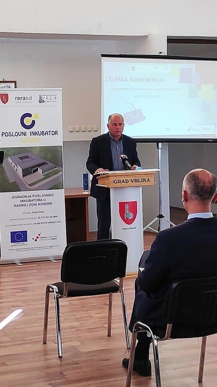Danas je Domu kulture u Vrlici održana završna konferencija projekta „Izgradnja poslovnog inkubatora u Radnoj zoni Kosore“. Rezultate projekta čija je provedba krenula 1.11.2017. i završava 30.9.2020. predstavili su nositelj projekta i vlasnik poslovnog inkubatora Kosore, grad Vrlika te njegovi projektni partneri, Razvojna agencija grada Vrlike Vrla d.o.o. i JU RERA S.D. Projekt je sufinanciran sredstvima EU i to iz Europskog fonda za regionalni razvoj u sklopu OP „Konkurentnost i kohezija 2014.-2020.“