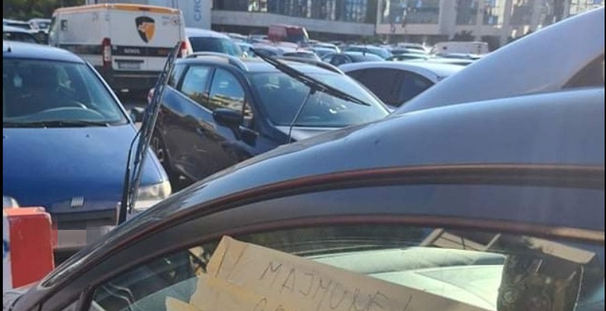 "MAJMUNE! GOVNO! SMRADE! ZNAŠ ZAŠTO", stoji na poruci koja je zalijepljena na vozačevom staklu, a napisana je na krep traku.
