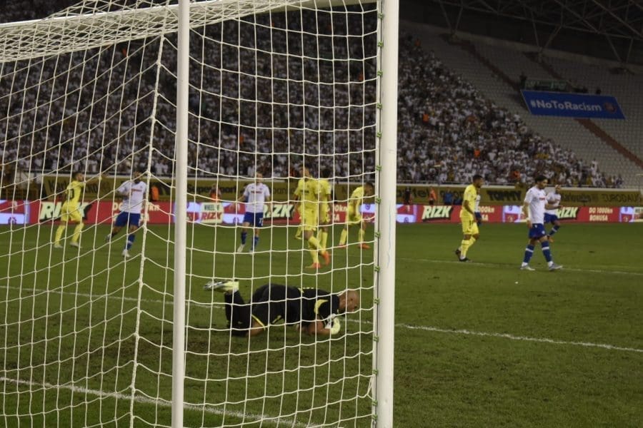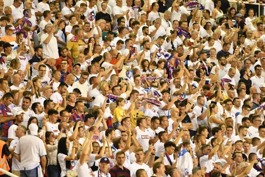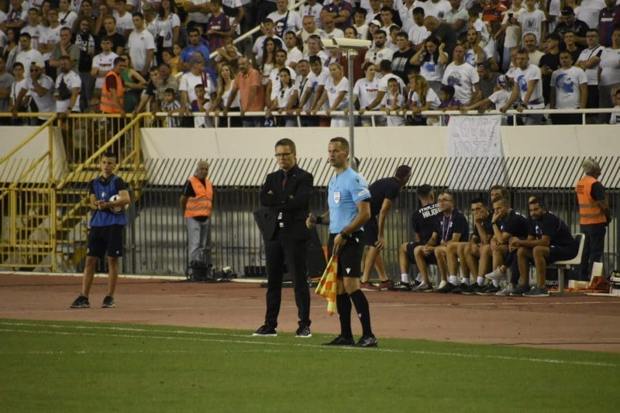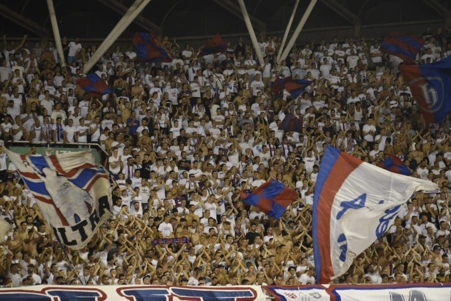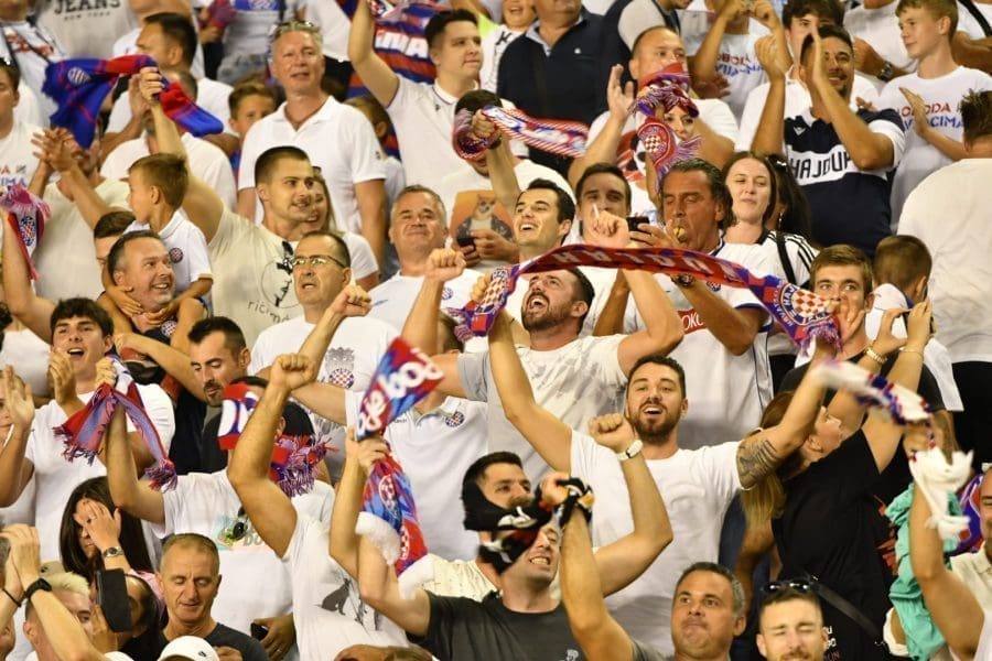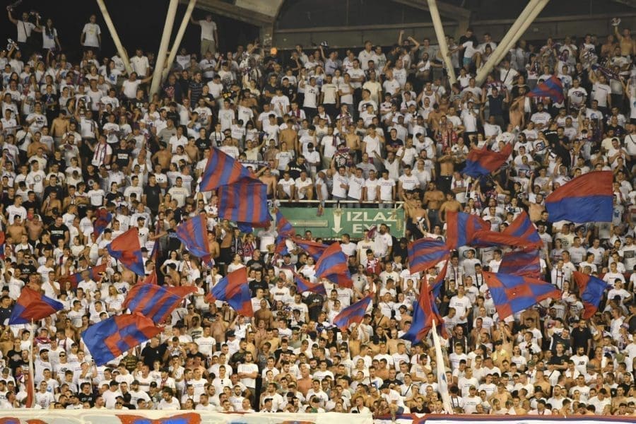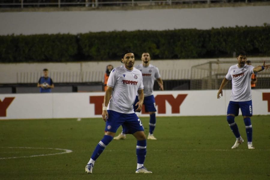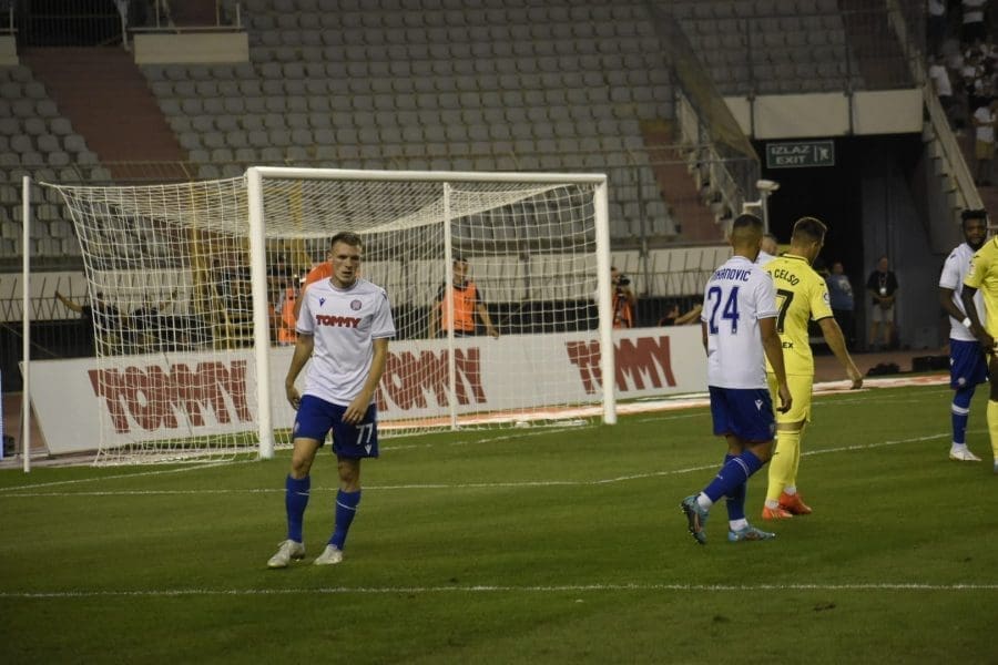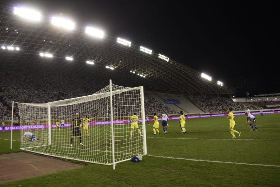 Hajduk na Poljudu igra uzvratnu play off utakmicu kvalifikacija za europsku Konferencijsku ligu. Na prepunom Poljudu je sjajna atmosfera i igra se vrlo čvrsta utakmica na terenu.