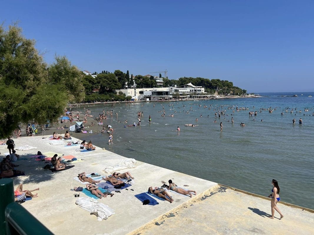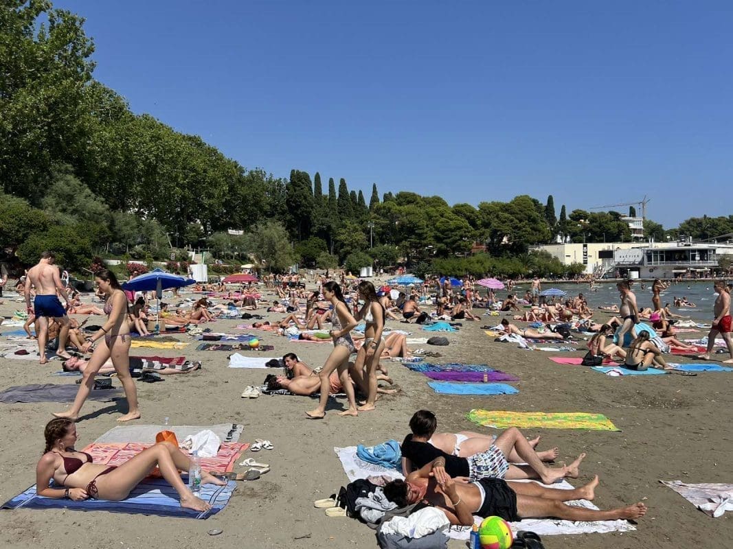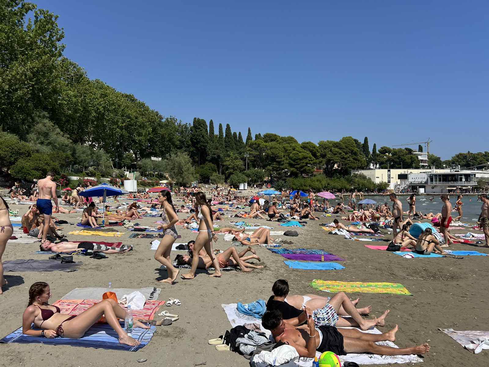 Termometar u Splitu pokazuje da je u zraku cijelo popodne 35 stupnjeva. Temperatura mora u Splitu trenutno je između 26 i 27 stupnjeva, pa osvježenja nema ni na plivanju. Ultraši i gosti ipak su danas vruće popodne proveli na Bačvicama.