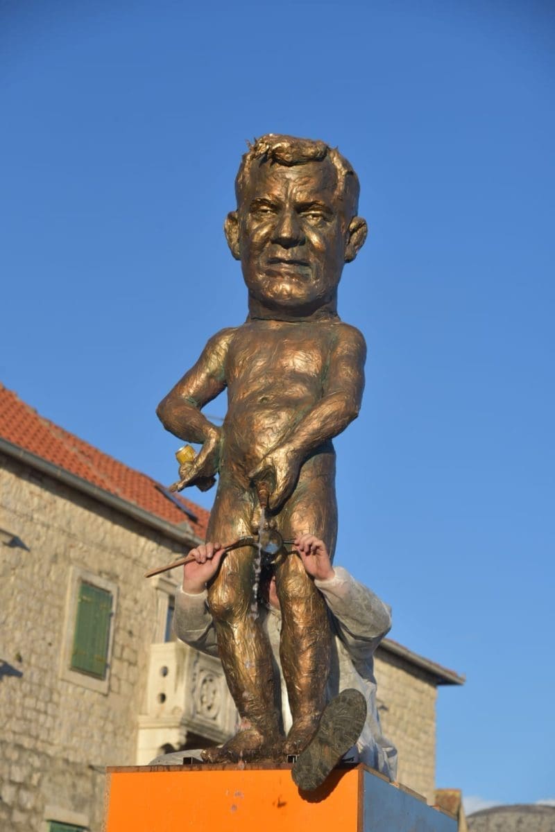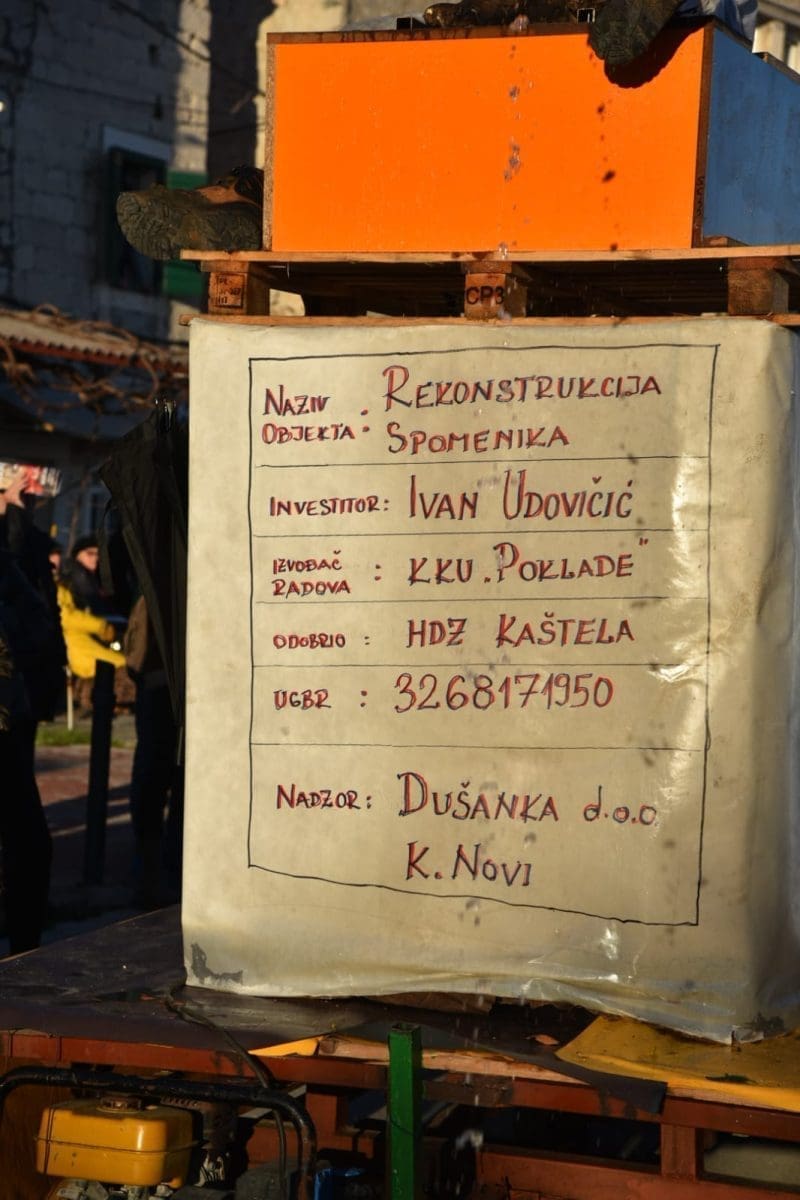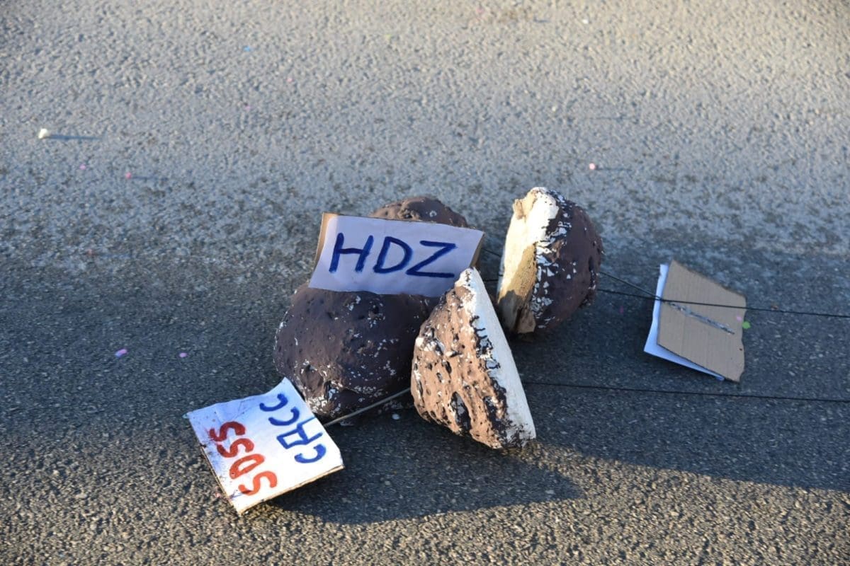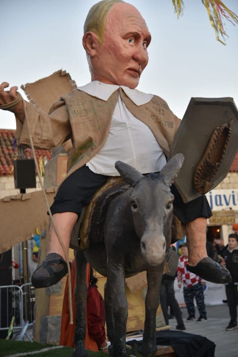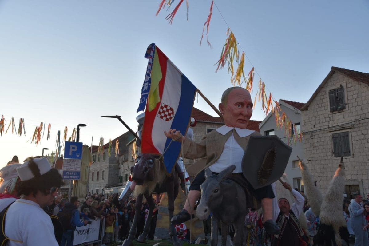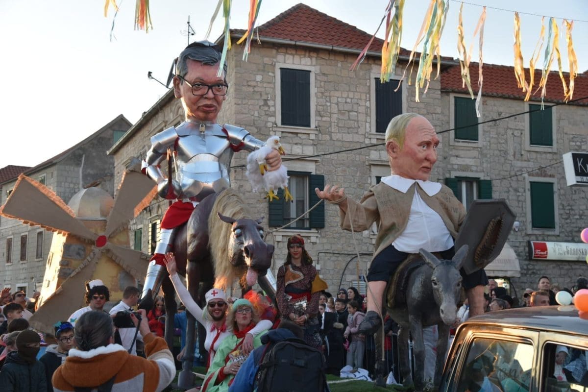 Krnju su predstavljali srbijanski predsjednik Aleksandar Vučić i ruski Vladimir Putin, koji su bili prikazani poput Don Quijota i Sancha Panze na magarcima te su njihove lutke na kraju završile u plamenu.