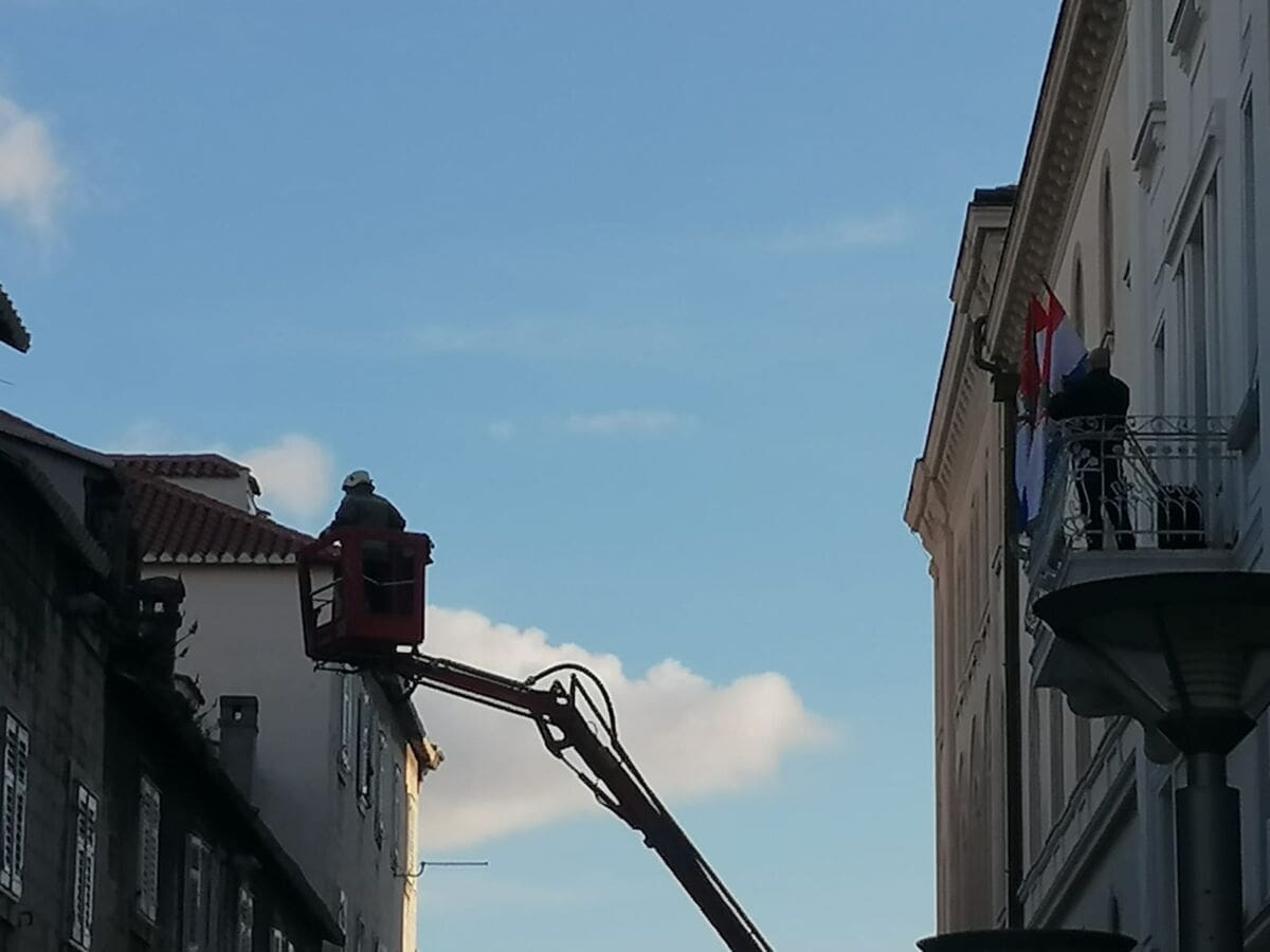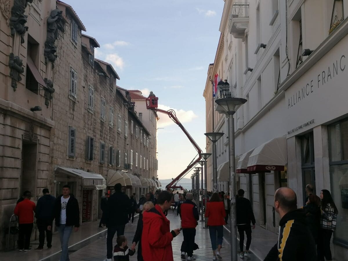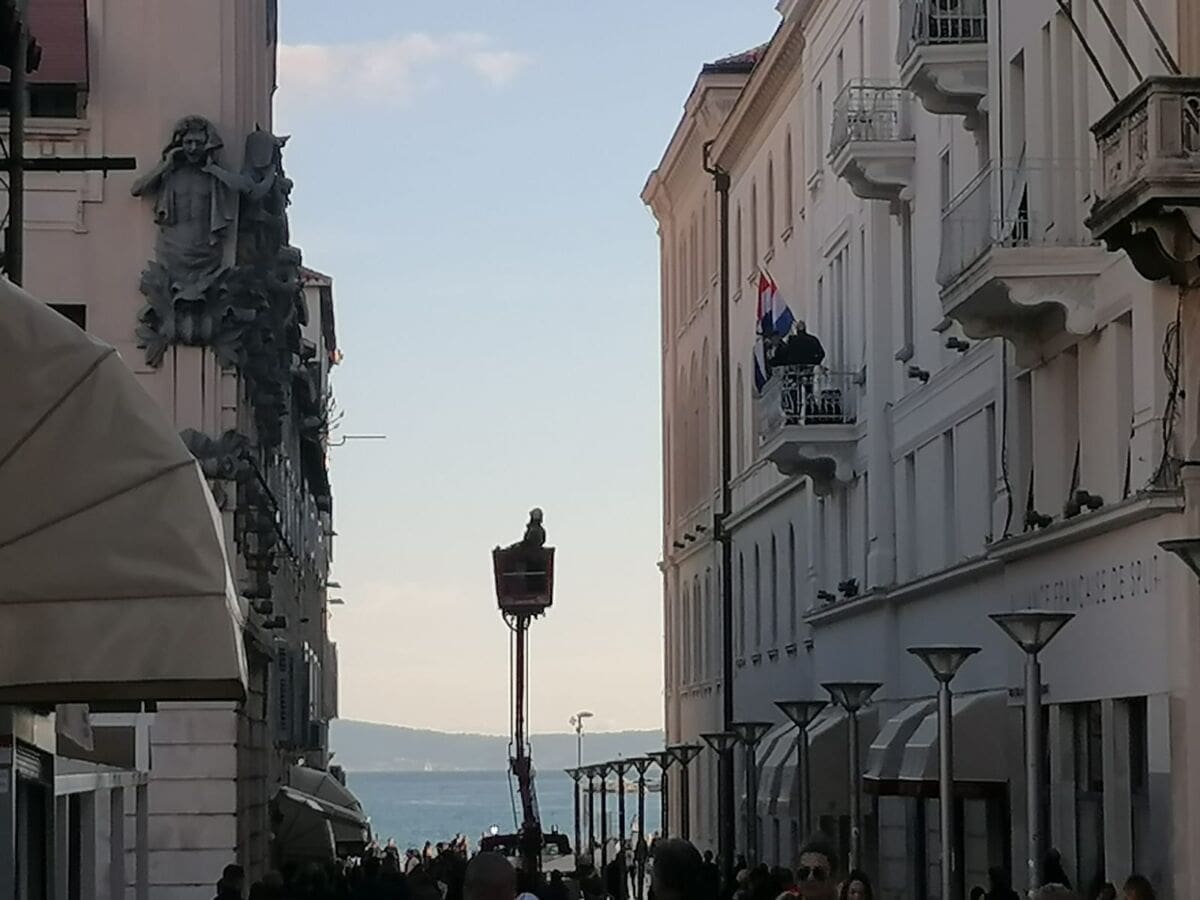 No njegov popodnevni performans danas je iza 18 sati prekinula vatrogasna intervencija. Kako doznajemo, u Marmontovu su stigla tri vatrogasca JVP-a Split s dva vozila. Razlog intervencije je bila škura koja je zbog starosti prijetila padom, što je predstavljalo ozbiljnu prijetnju po sigurnost prolaznika.